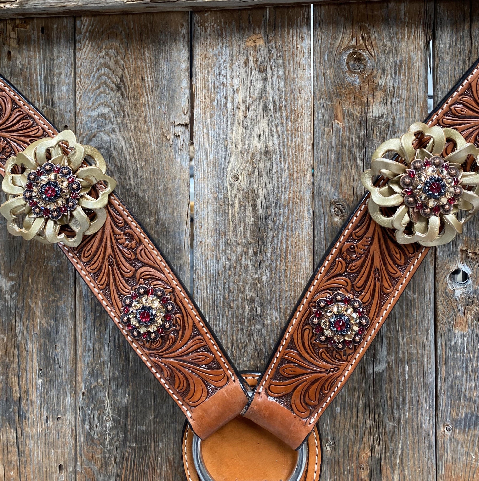 Breastcollar - Gold Flowers & European Crystal Conchos #BC243