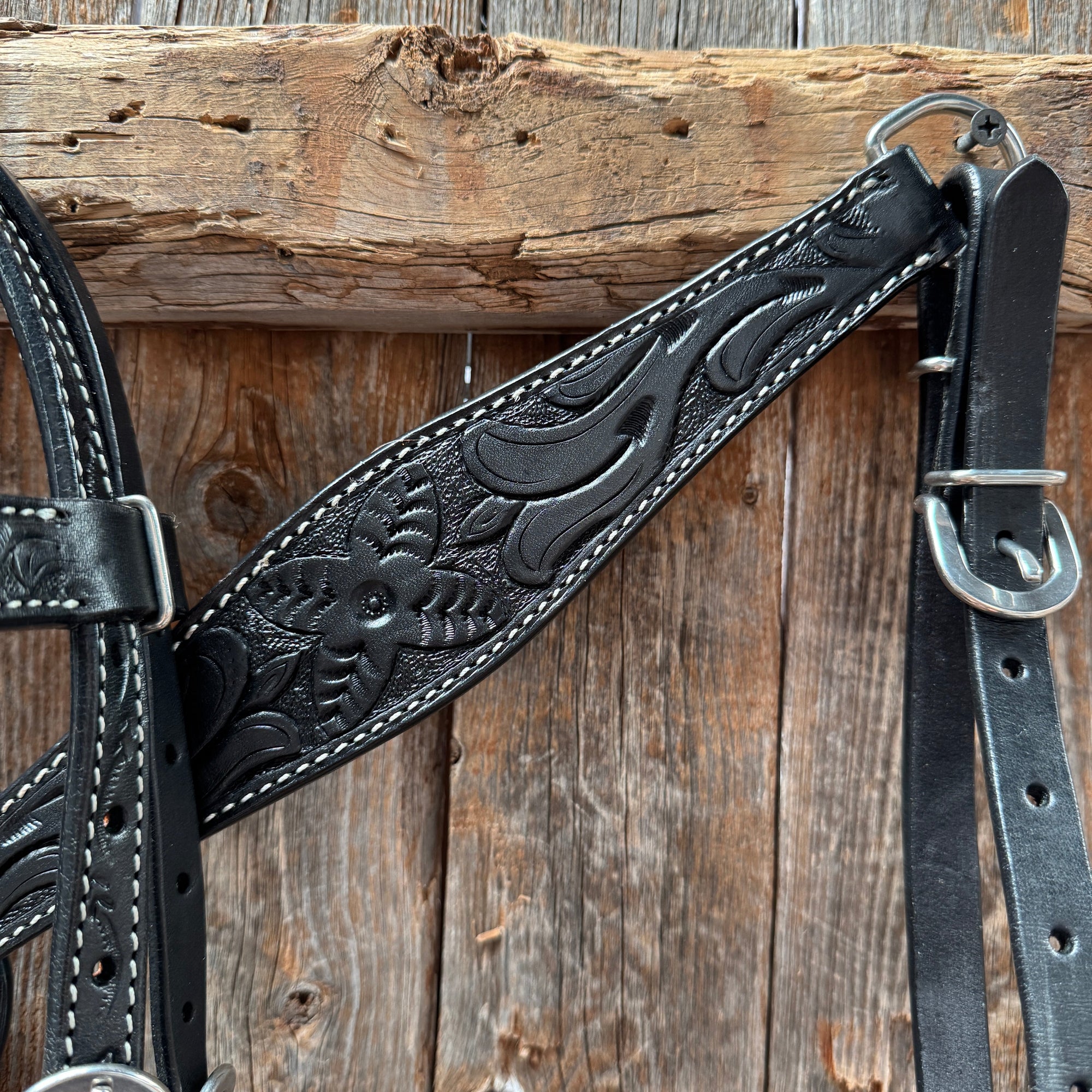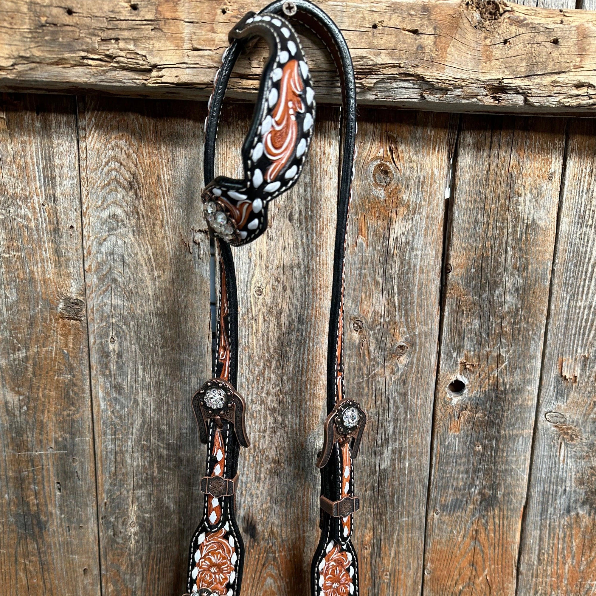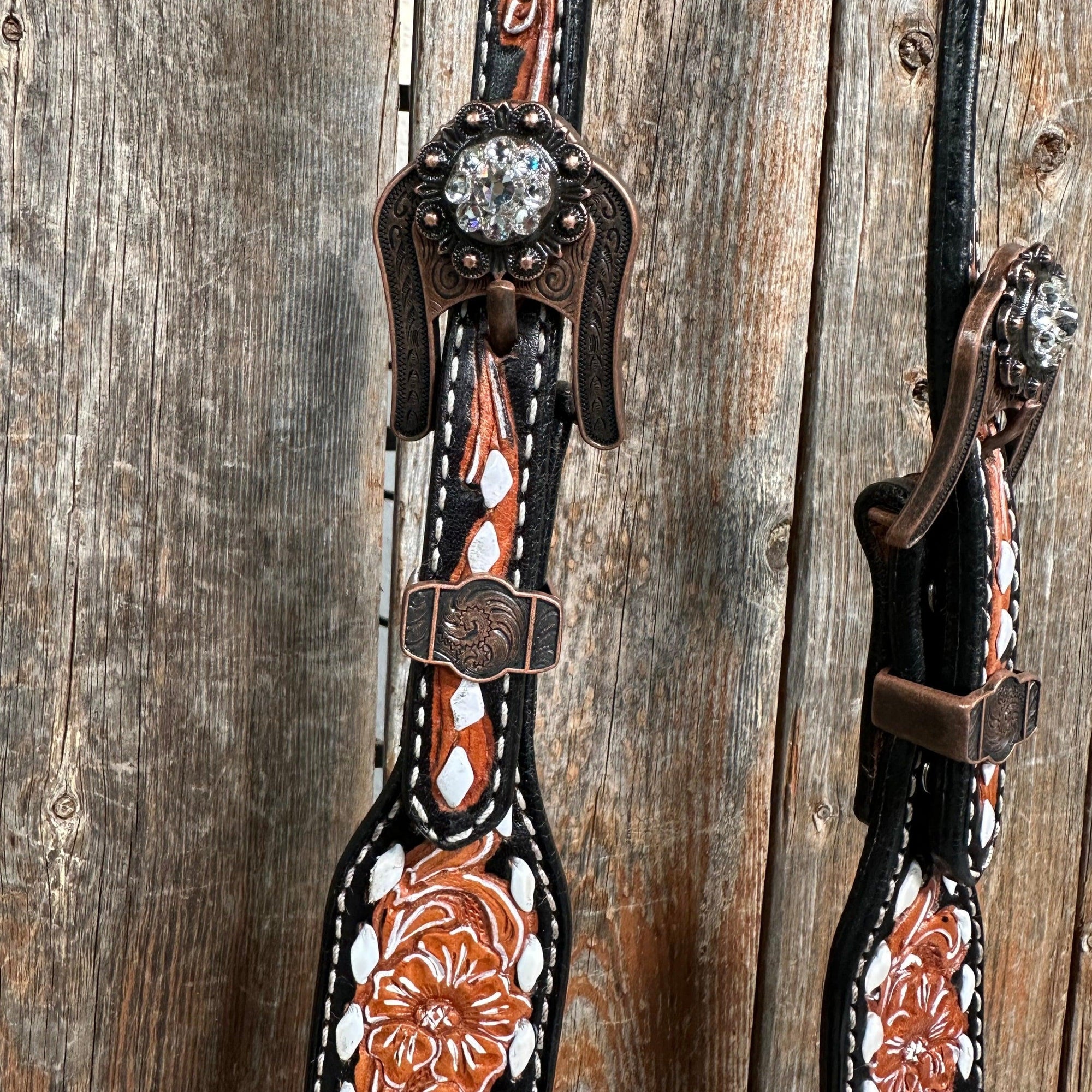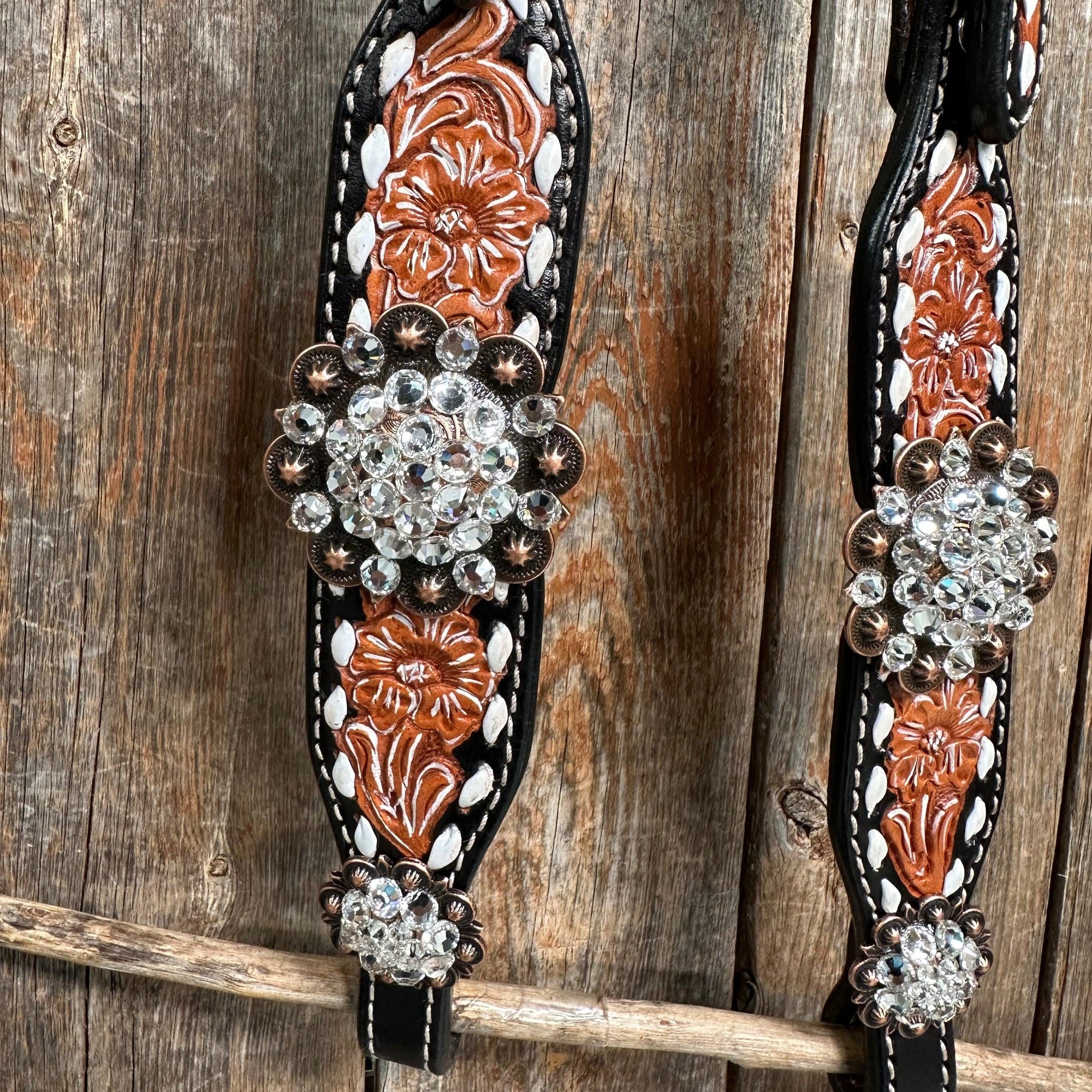 Dark Oil Floral Clear One Ear/ Breastcollar Tack Set #OEBC517