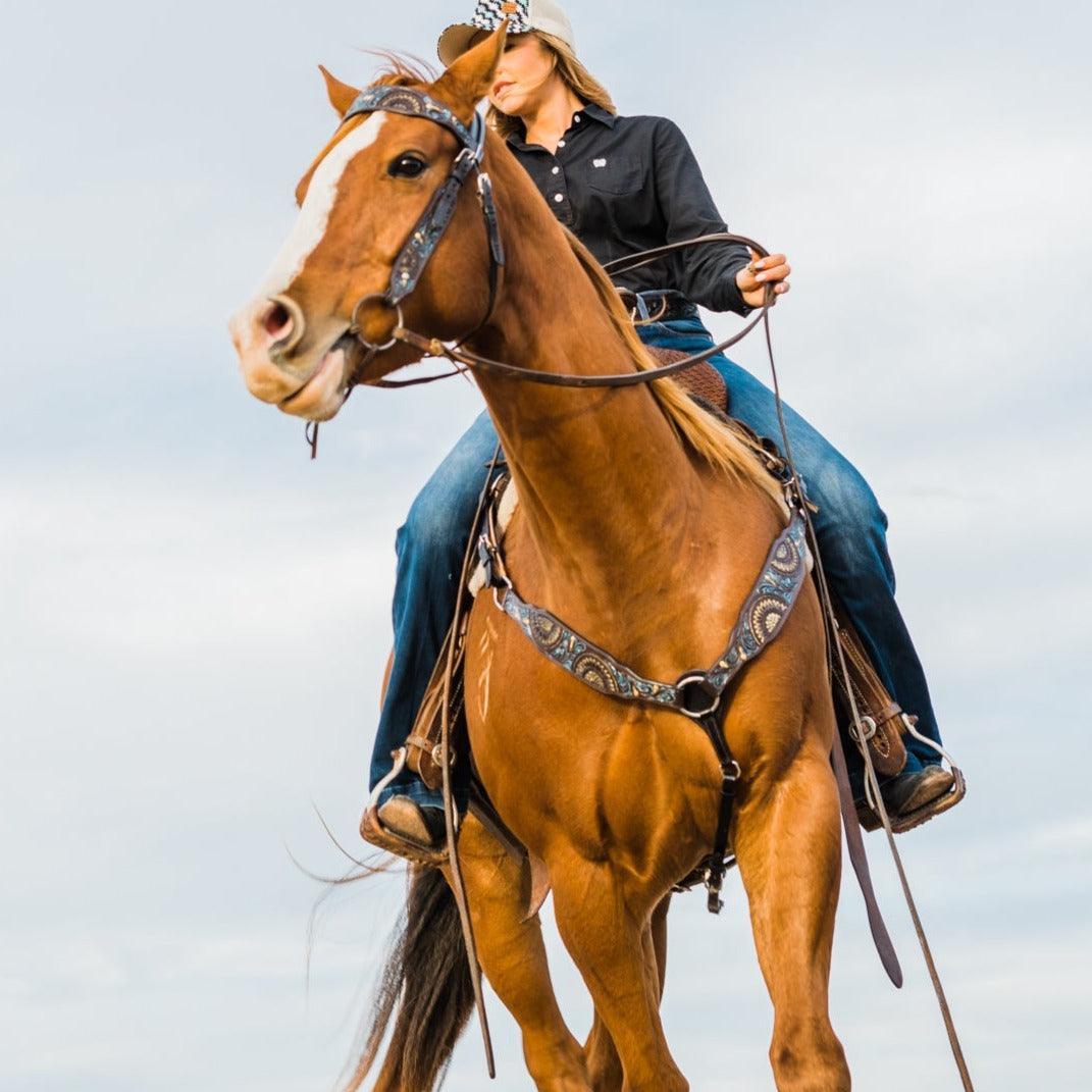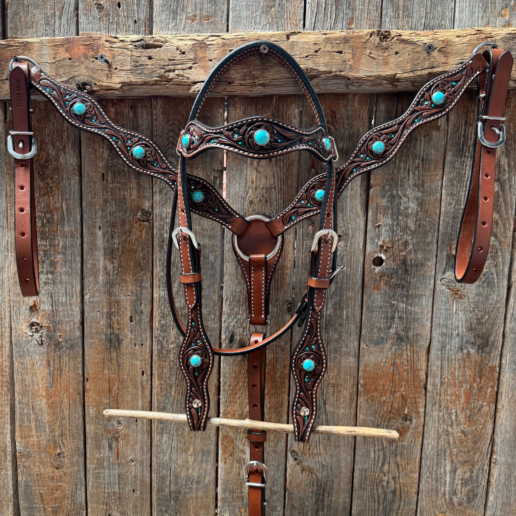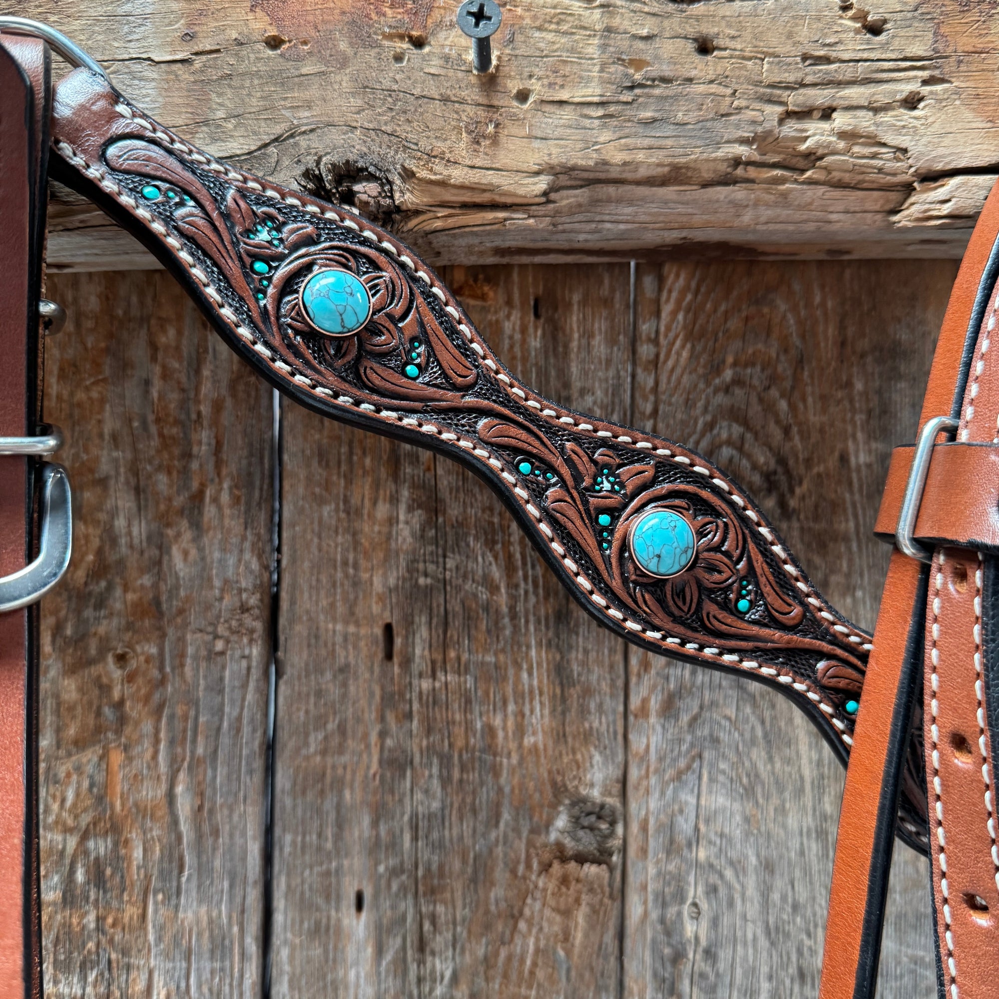 Light Oil Buckaroo Roper Turquoise One Ear & Breastcollar Tack Set #OEBC446
