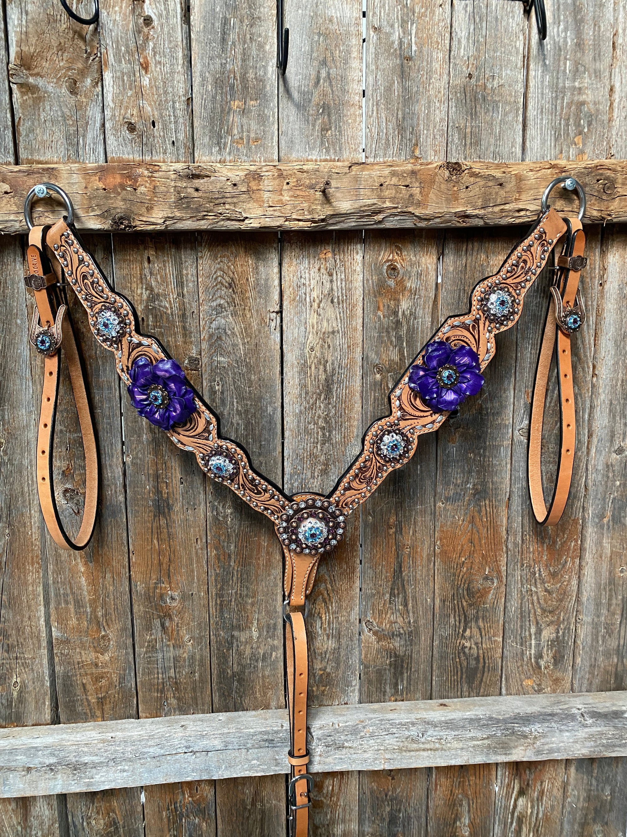 Light Oil Silver Dot Purple and Aqua One Ear & Breastcollar Tack Set #OEBC434