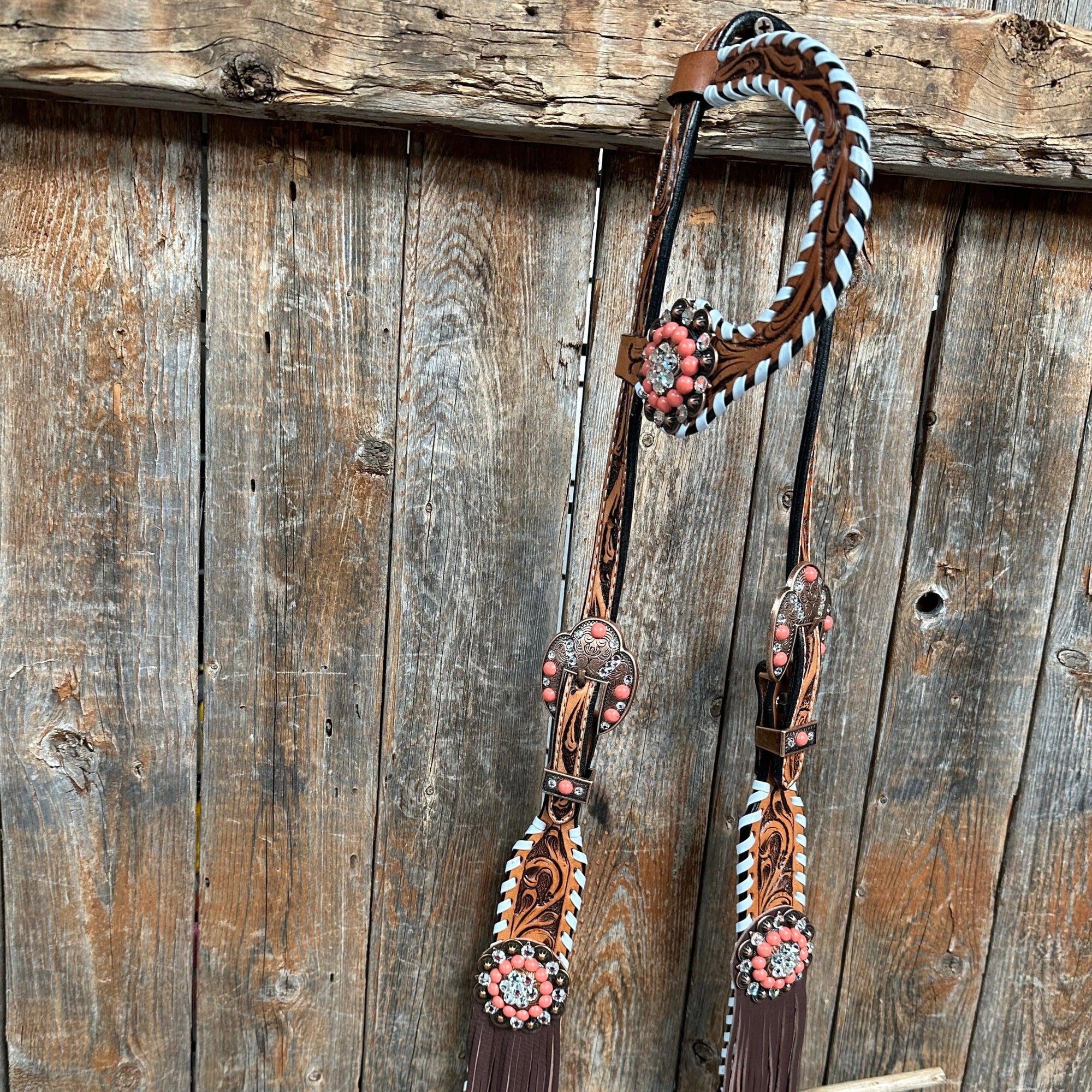 Whipstitch Coral and Clear One Ear/ Breastcollar Tack Set #OEBC516