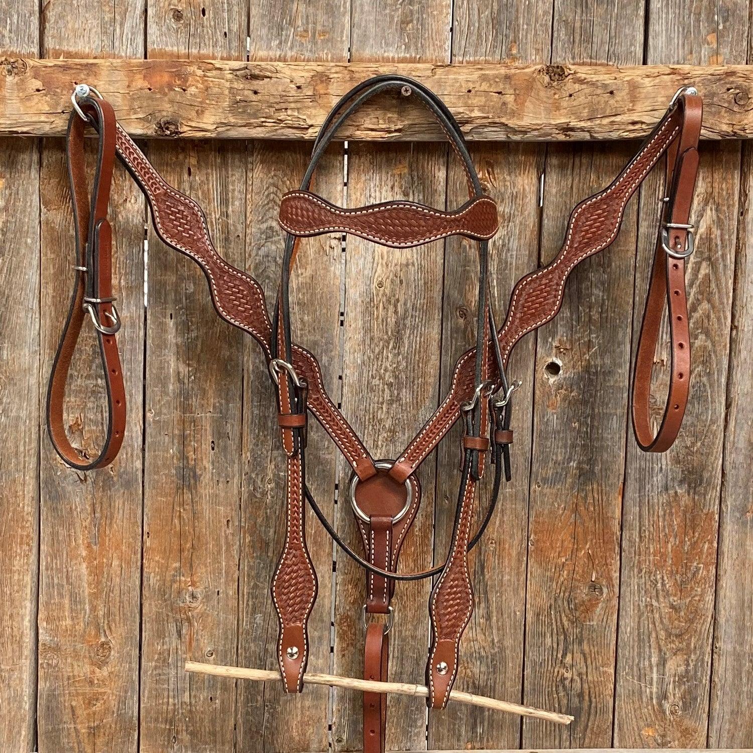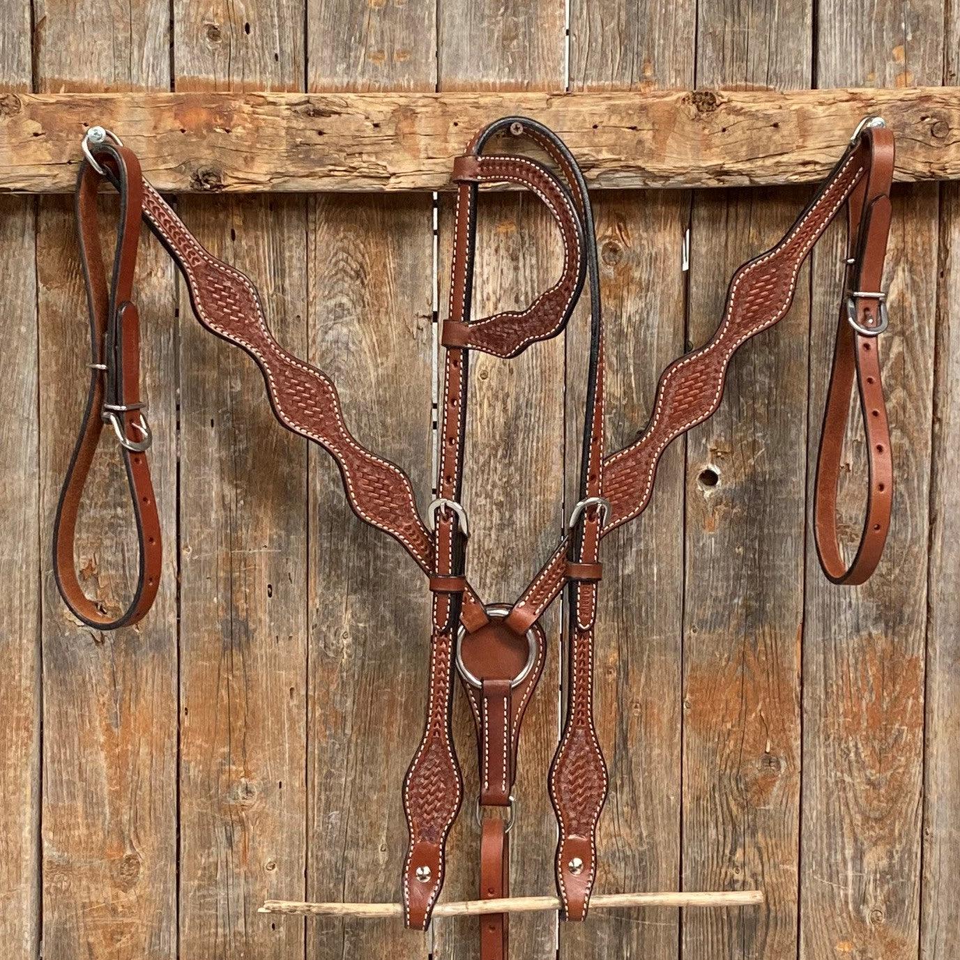 Light Oil Basketweave Champagne and Red One Ear & Breastcollar Tack Set #OEBC432