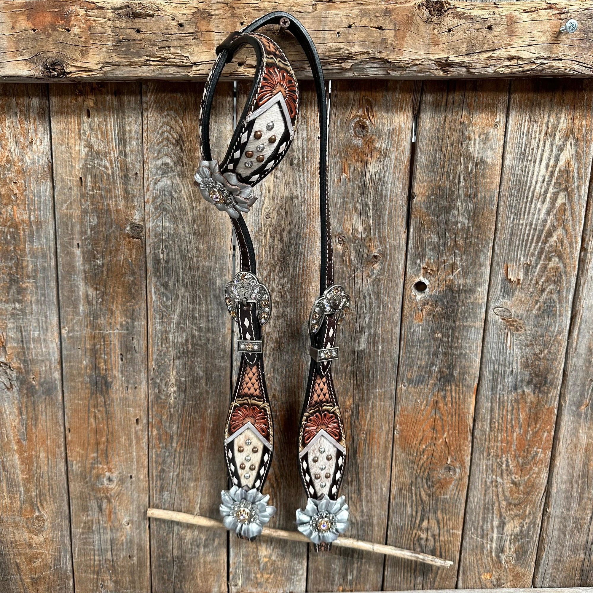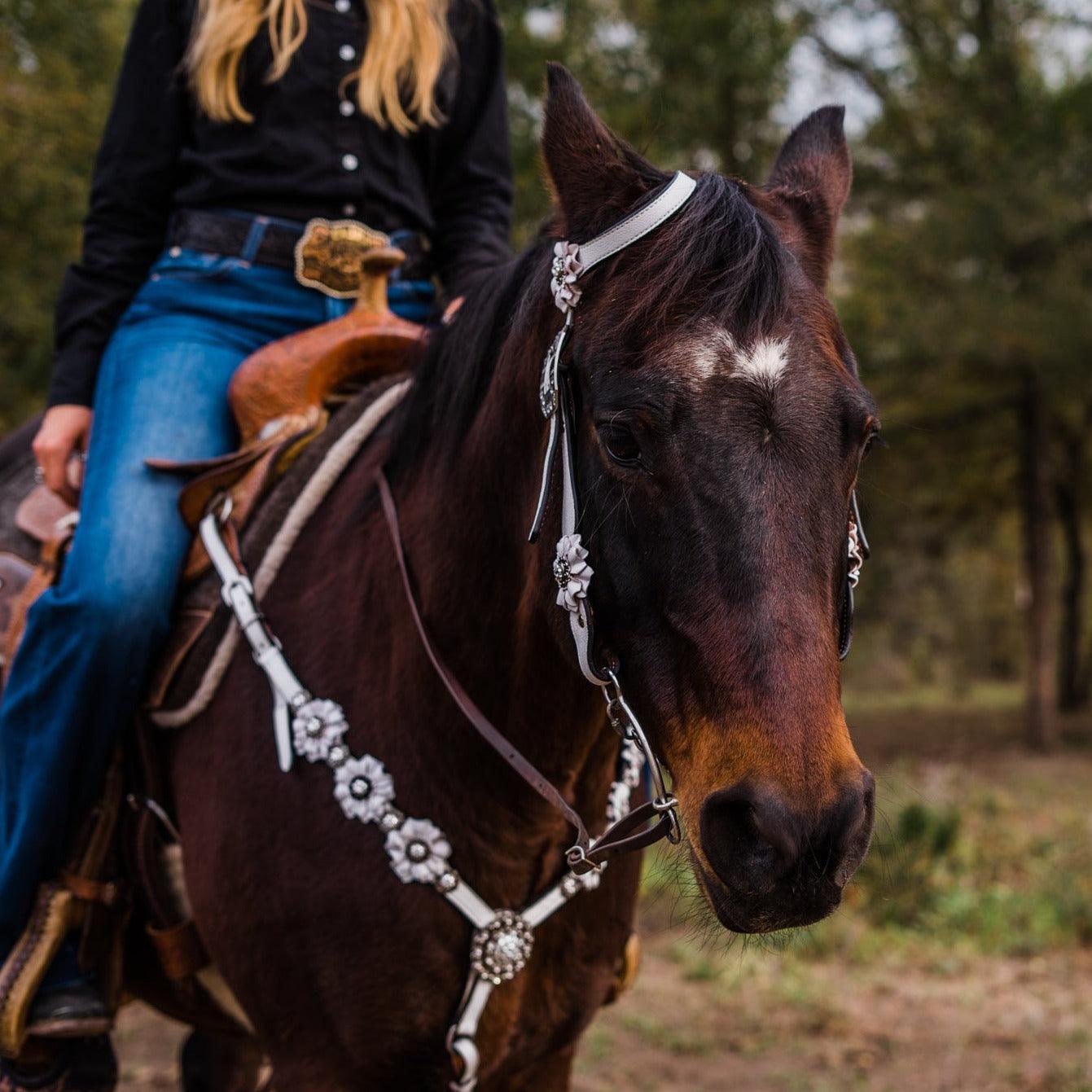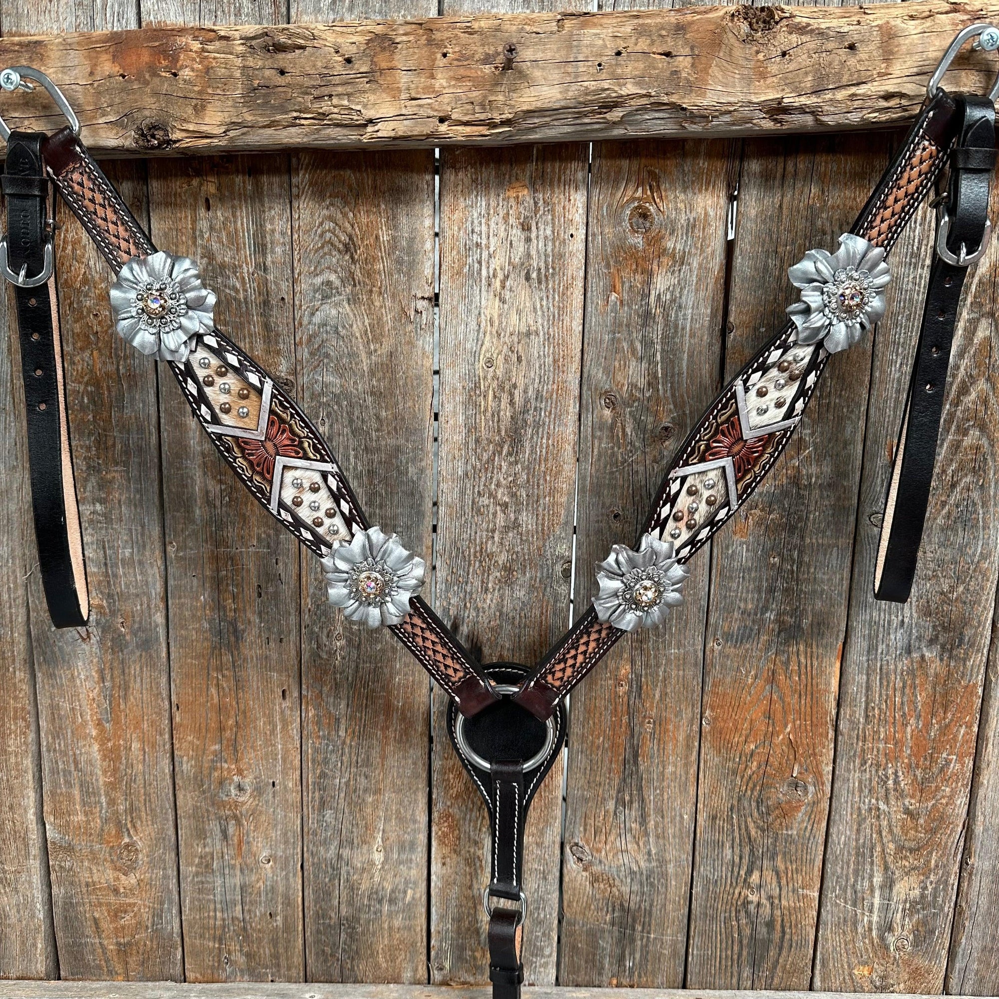 Light Oil Whipstitch White Daisy One Ear/ Breastcollar Tack Set #OEBC519
