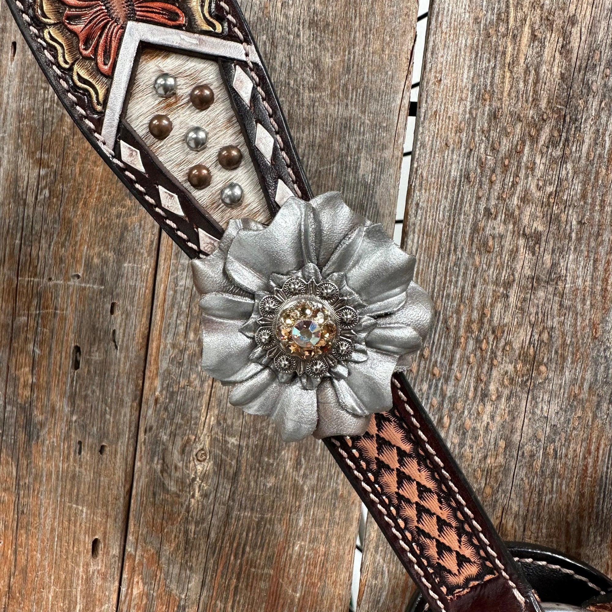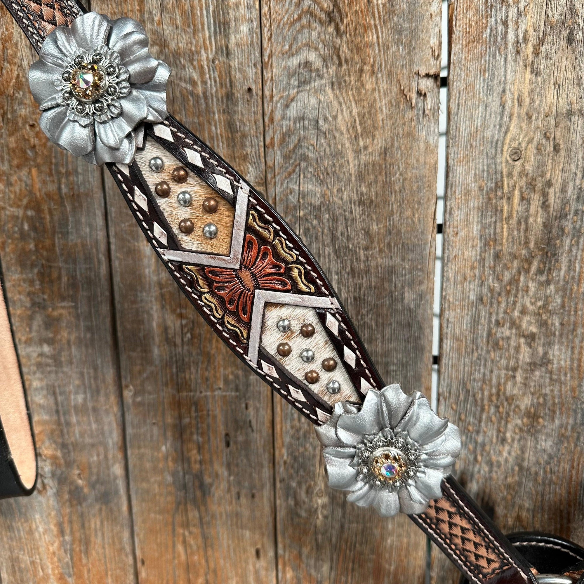 Cowhide Champagne and Silver One Ear/ Breastcollar Tack Set #OEBC556