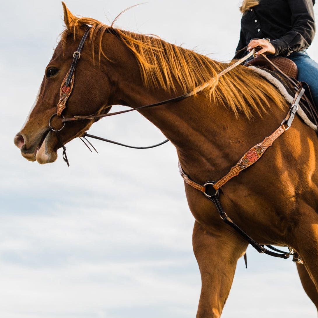 Light Oil Hand Painted Rose Headstall/Breastcollar Tack Set