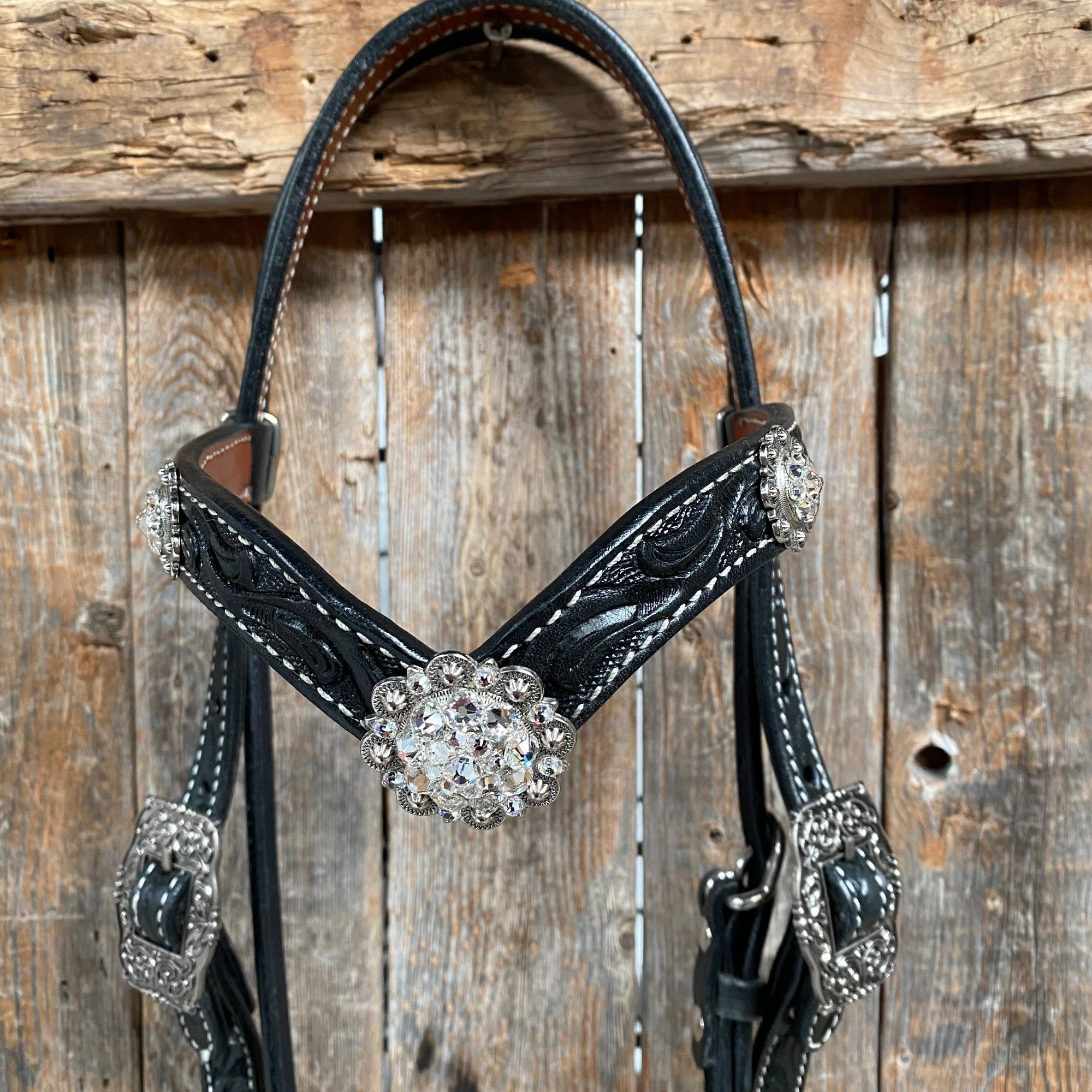 Black Browband Headstall / Bridle & Crystal Conchos #BB205