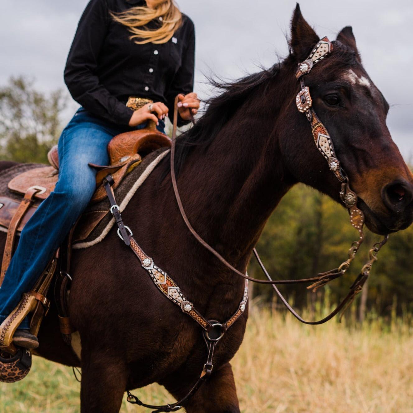 Rust Triangle Fire Opal and Teal One Ear/ Breastcollar Tack Set #OEBC518