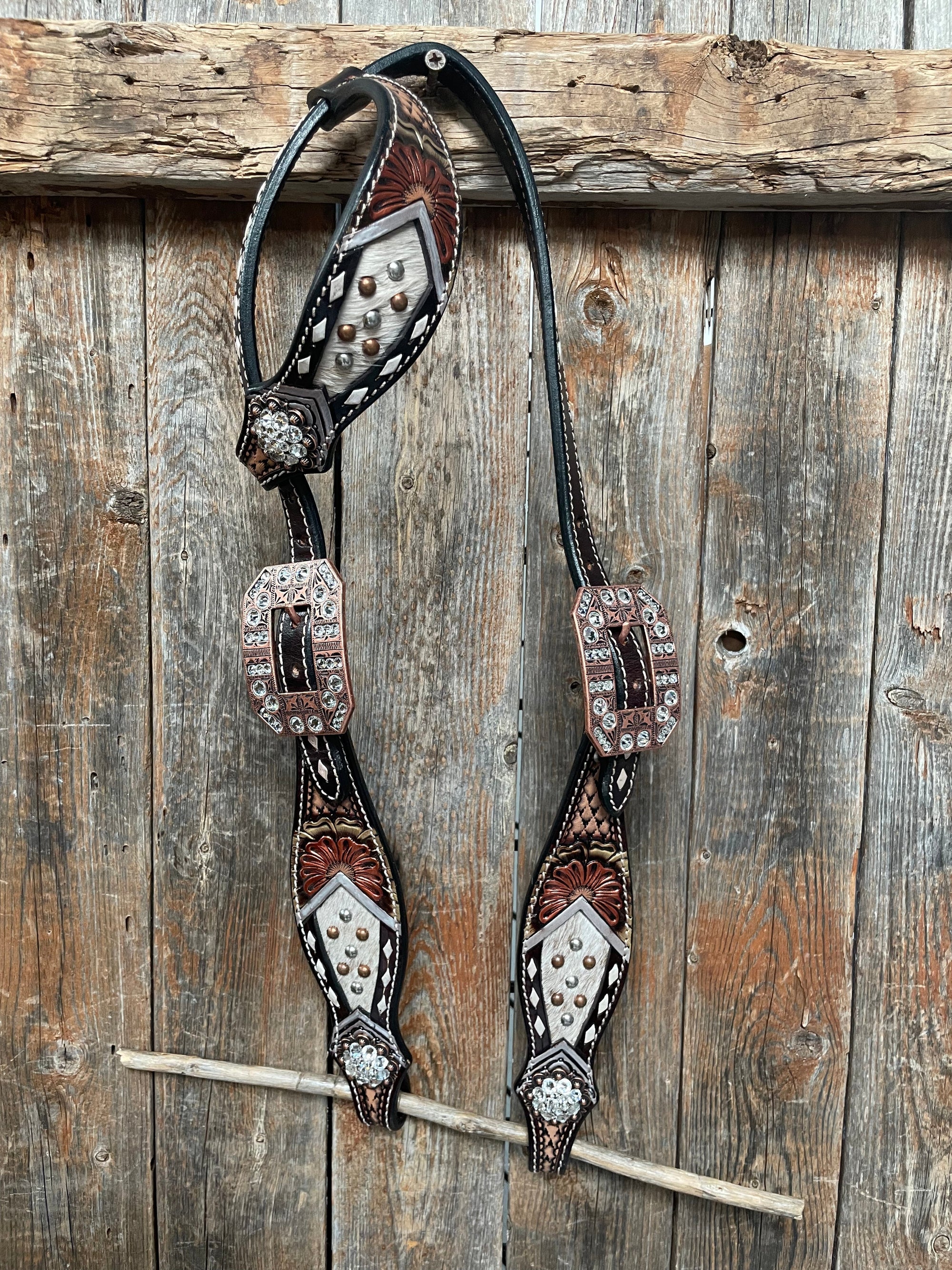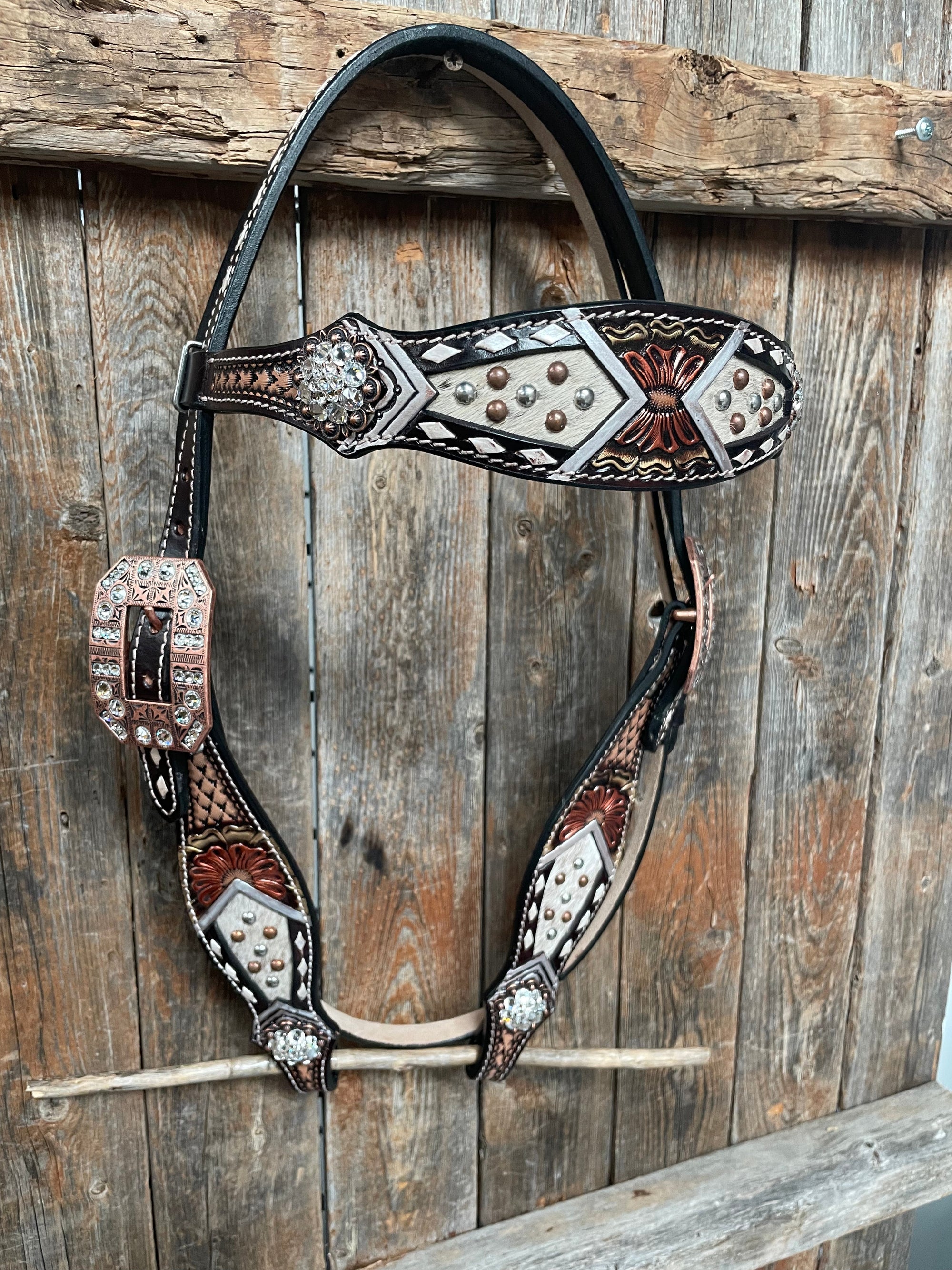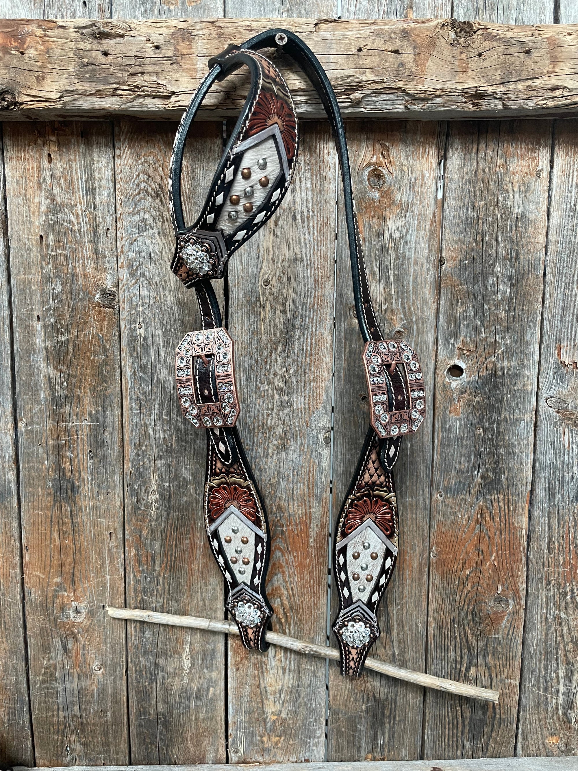 Draft Black Floral Copper Flower V-Browband #BB134D