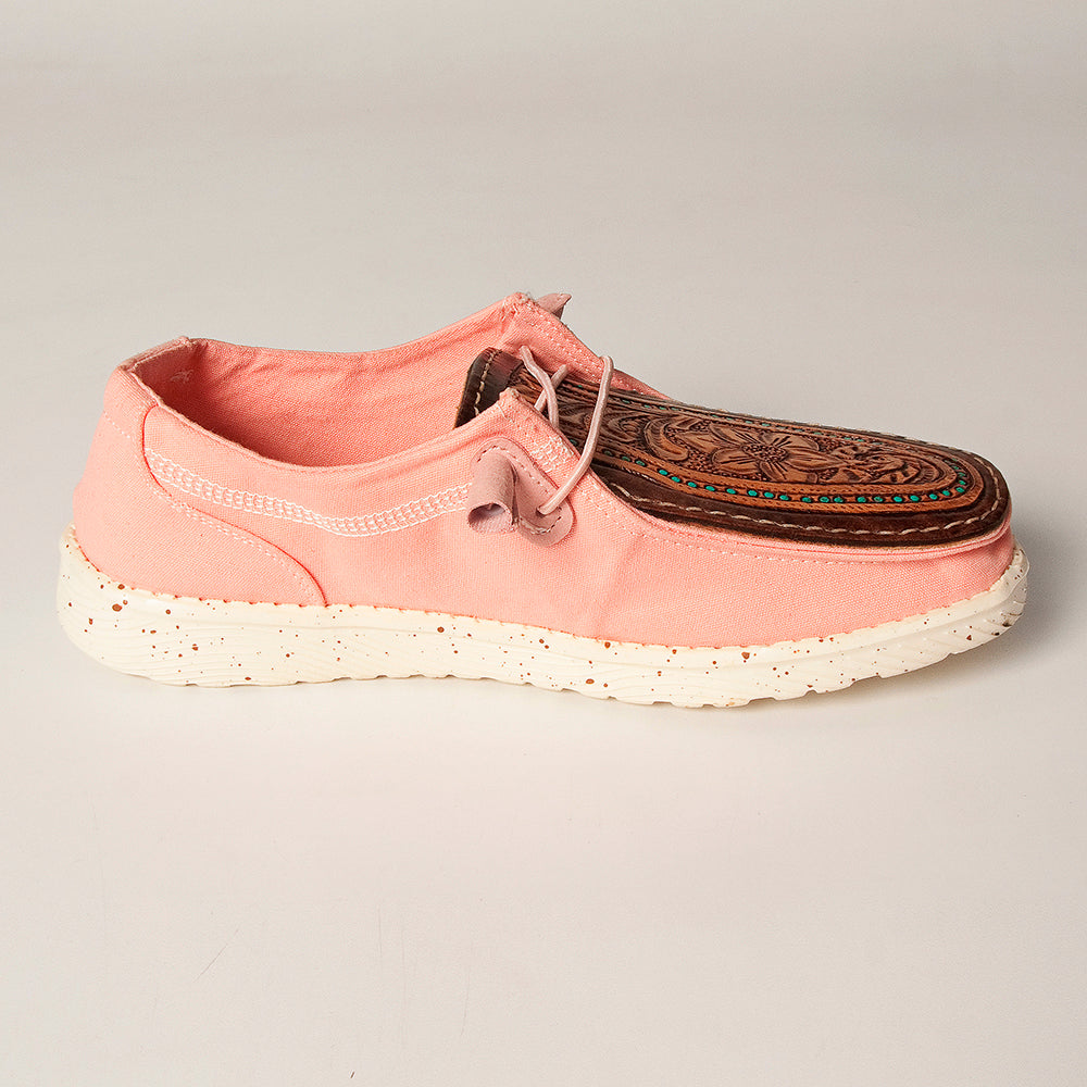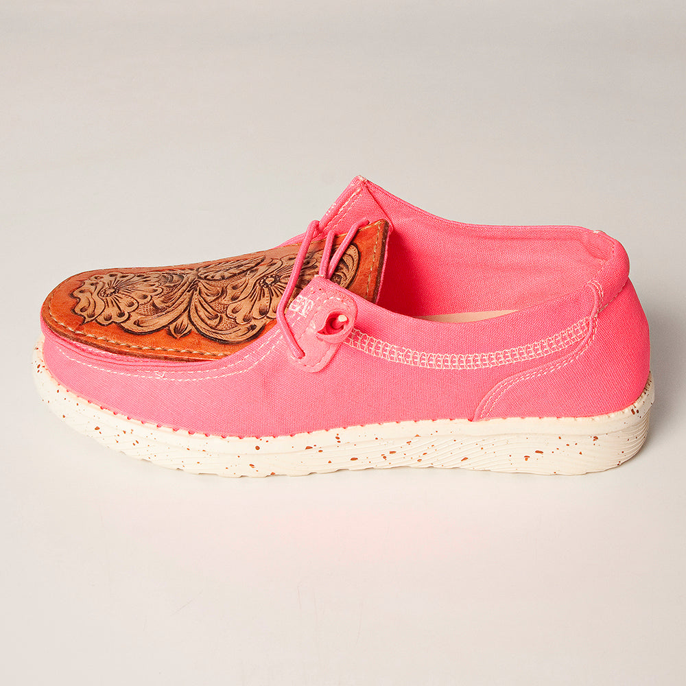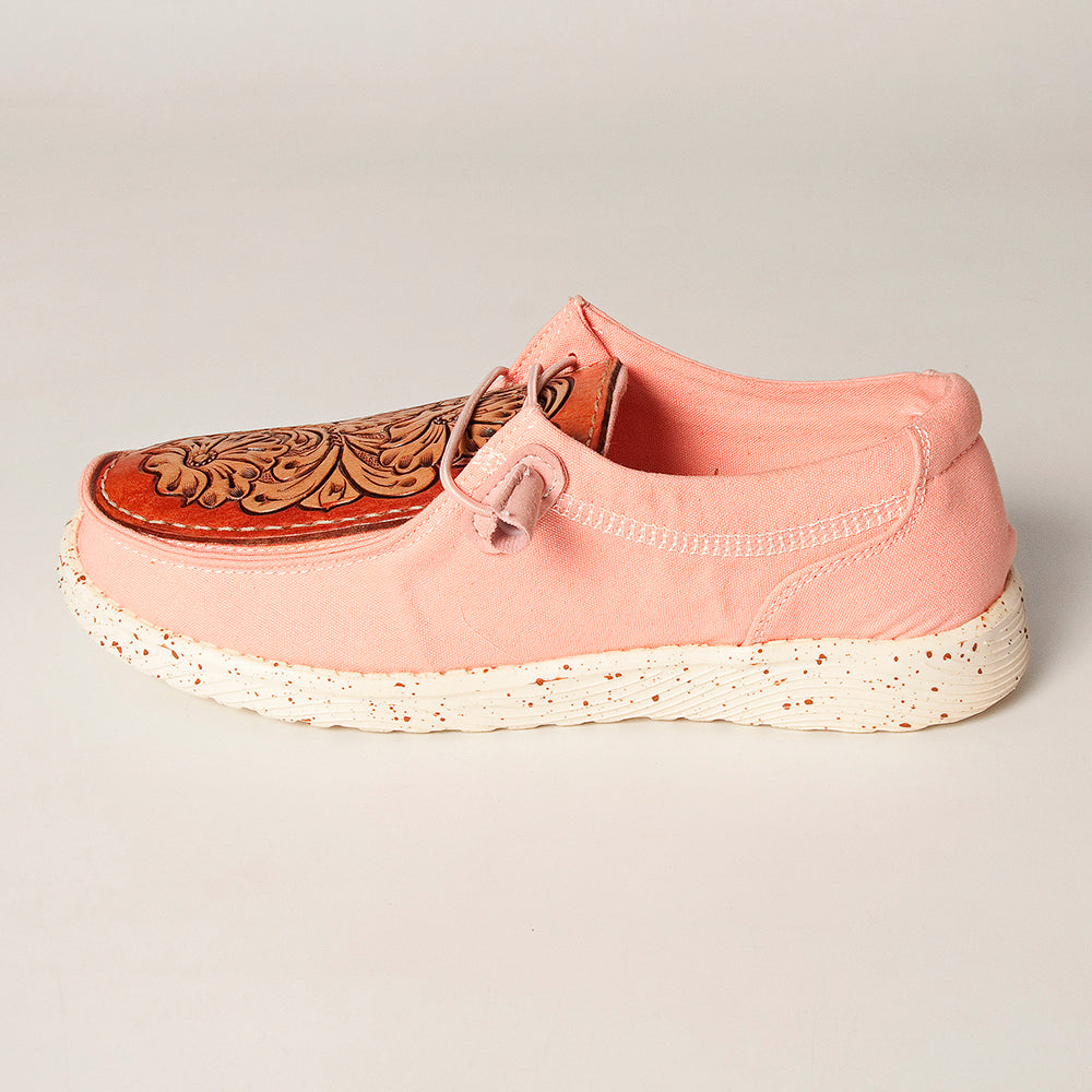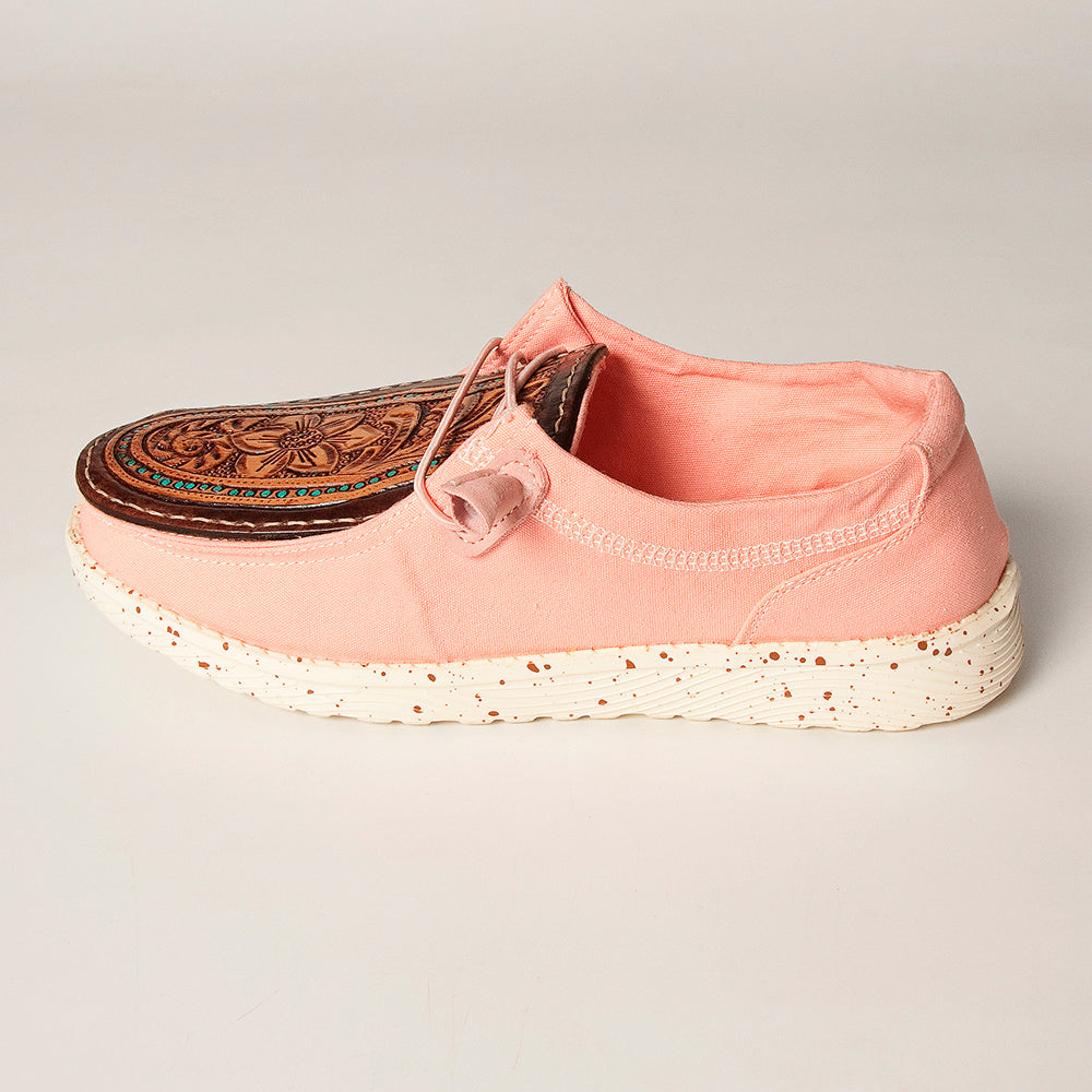 American Darling ADFT133PK9 Hand tooled carved genuine leather trim lightweight shoe footwear slip on