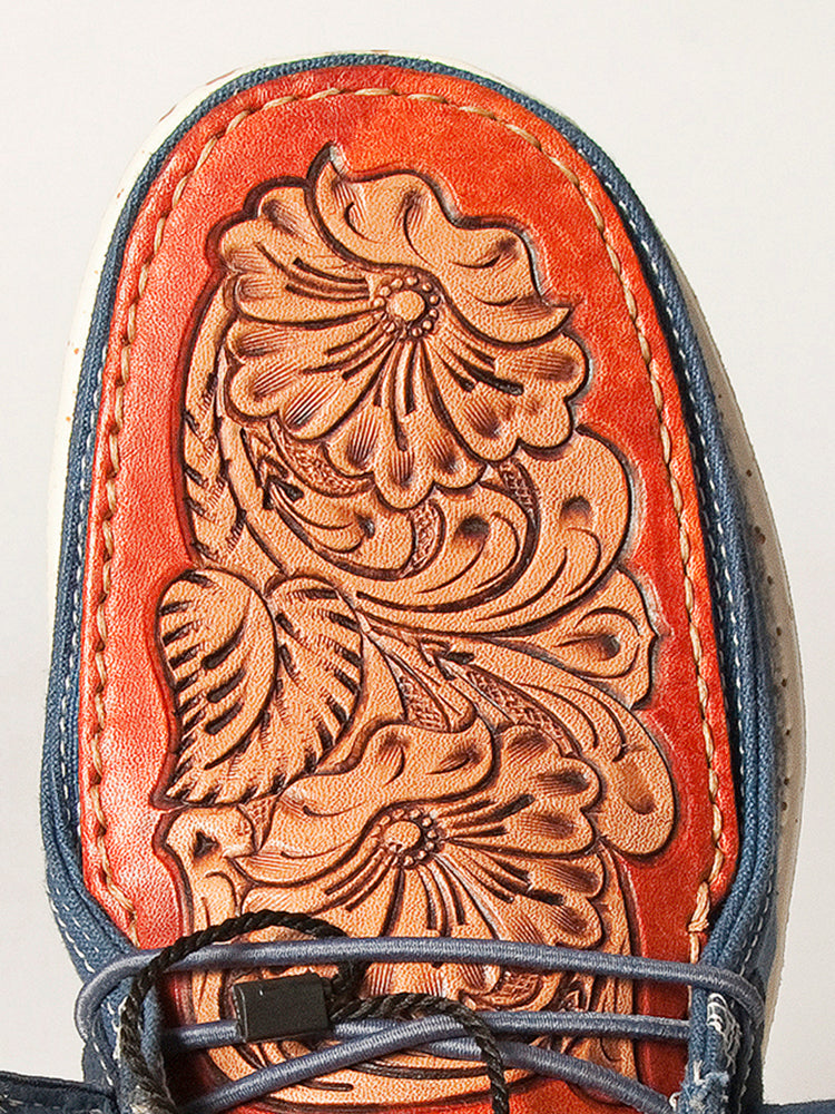 American Darling ADFT133NEPK11 Hand tooled carved genuine leather trim lightweight shoe footwear slip on