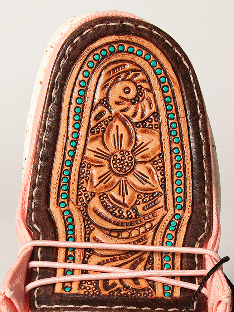 American Darling ADFT133PK11 Hand tooled carved genuine leather trim lightweight shoe footwear slip on