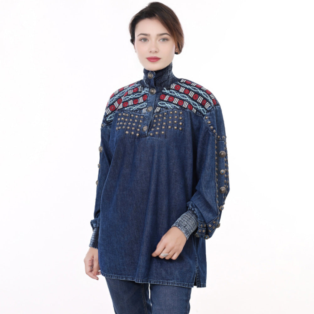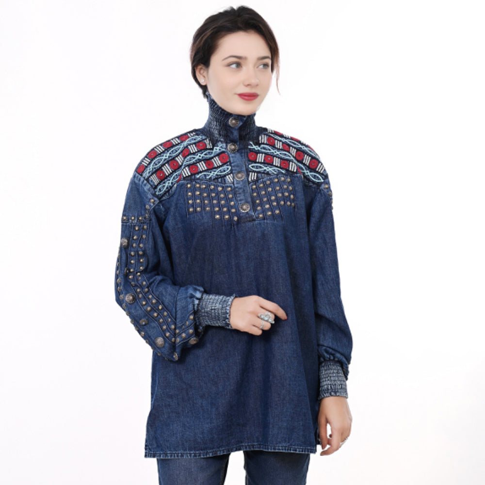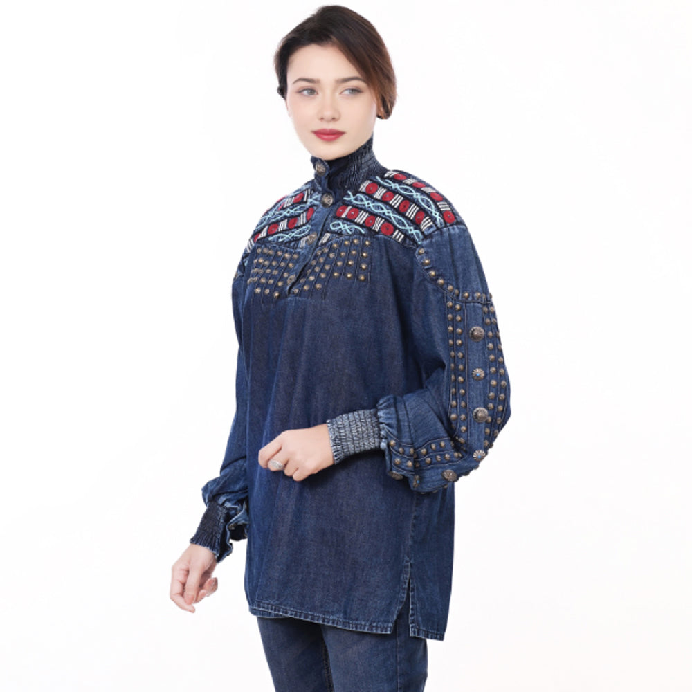 ADDR019 Denim Women shirt Jacket Dress Tunic Ladies Girl Top