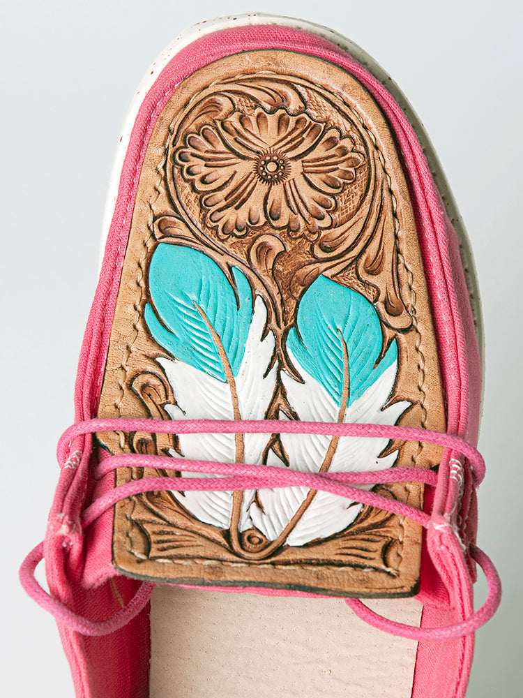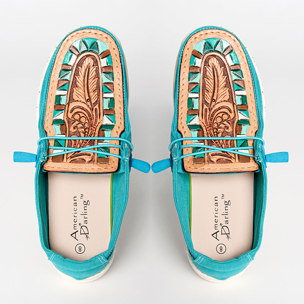 American Darling ADFT133FU3 Hand tooled carved genuine leather trim lightweight shoe footwear slip on