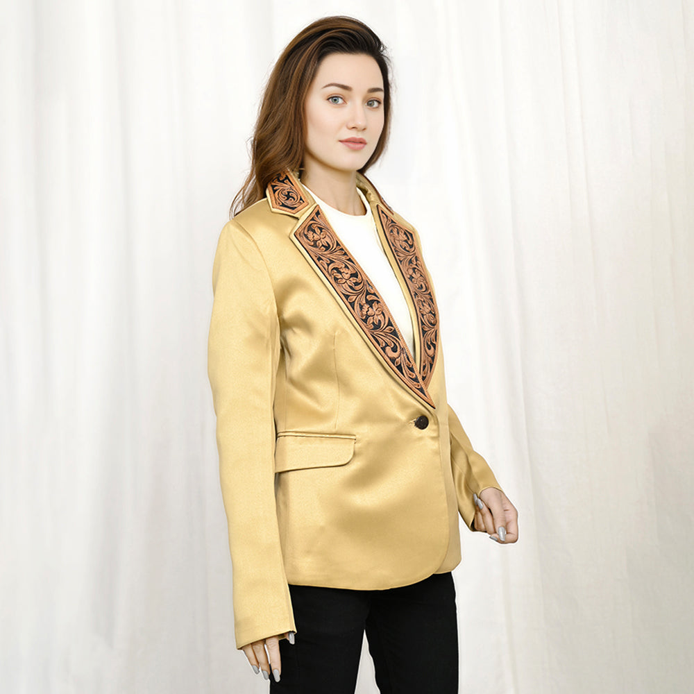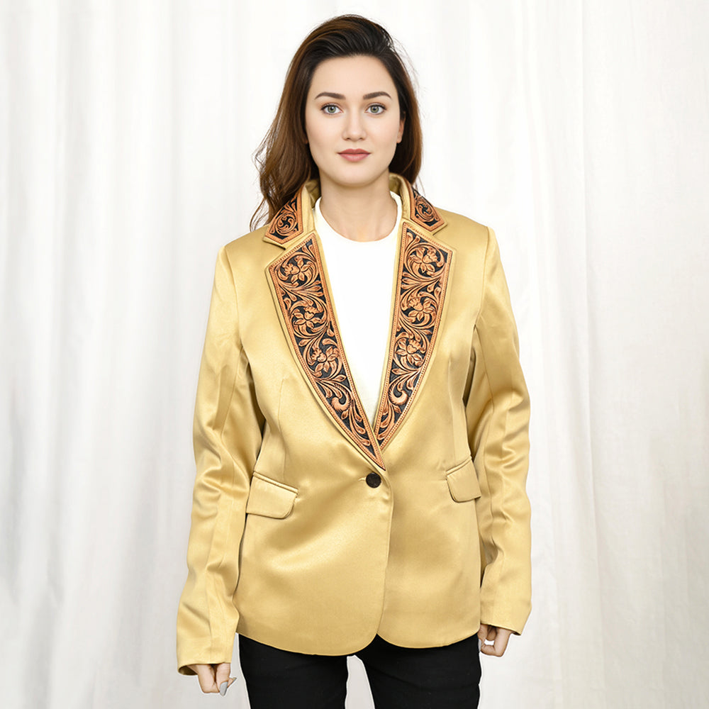 Genuine leather Hand tooled hand carved Women Blazer dress jacket ladies Girl