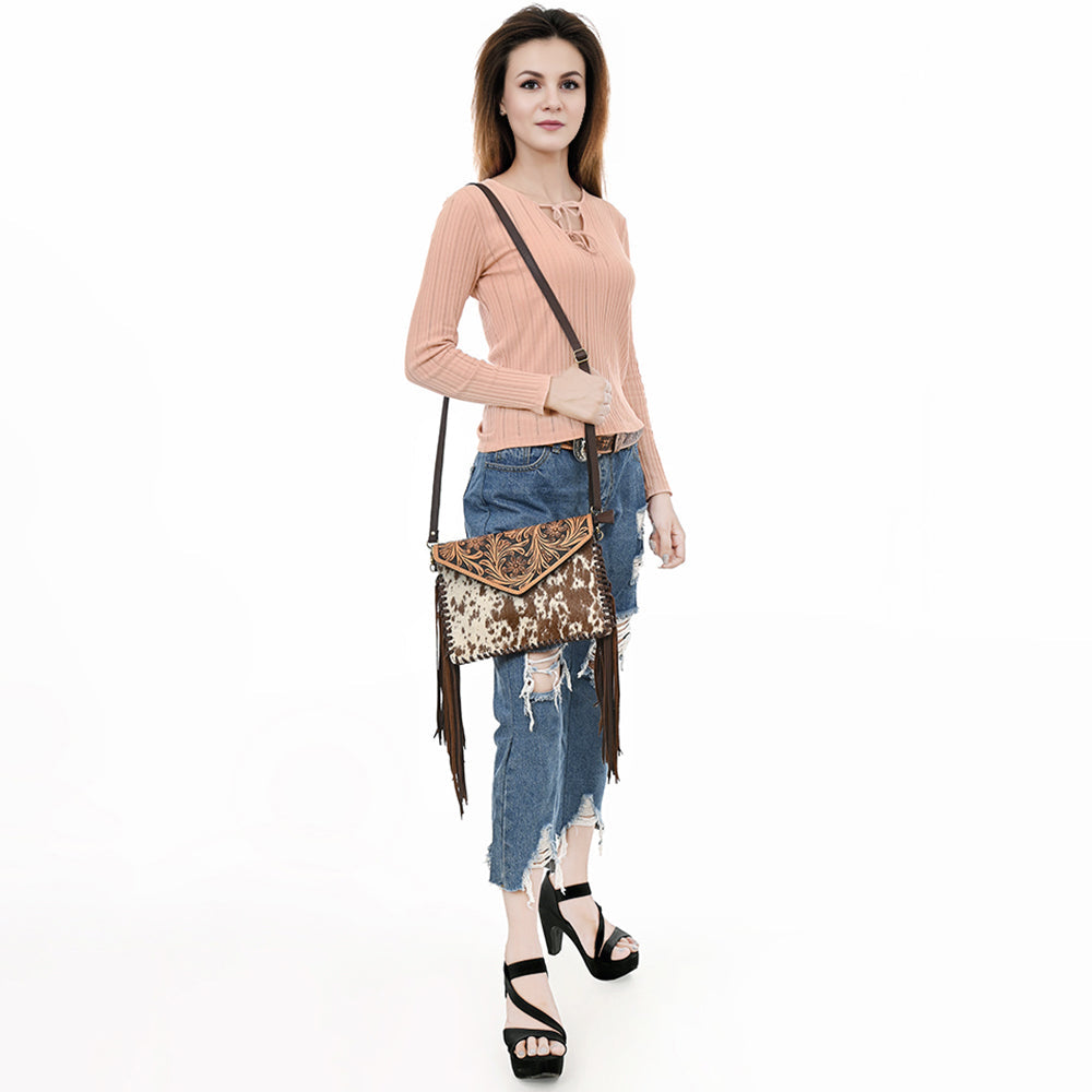 American Darling ADBGD112 Envelope Hand Tooled Hair-On Genuine Leather Women Bag Western Handbag Purse