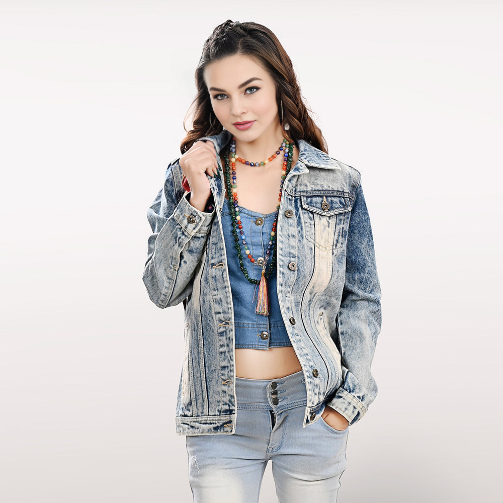 ADJKT031 Genuine leather Hand tooled hand carved Women 100% cotton Denim jacket dress ladies girl