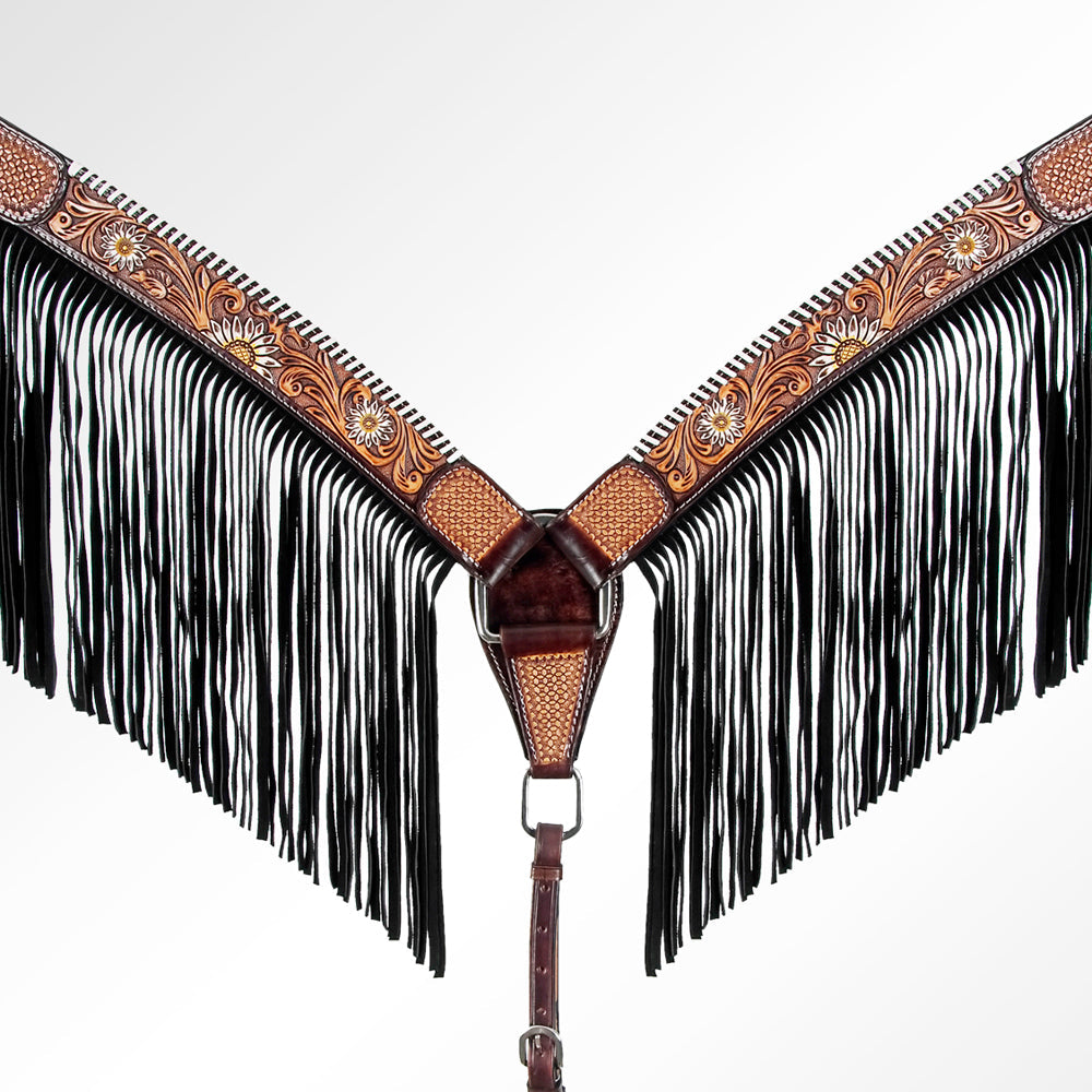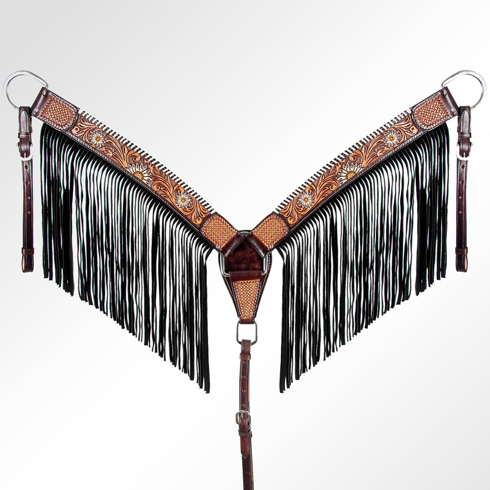 American Darling ADPAF124-BC Western Horse Floral Breast Collor Genuine Leather Tan
