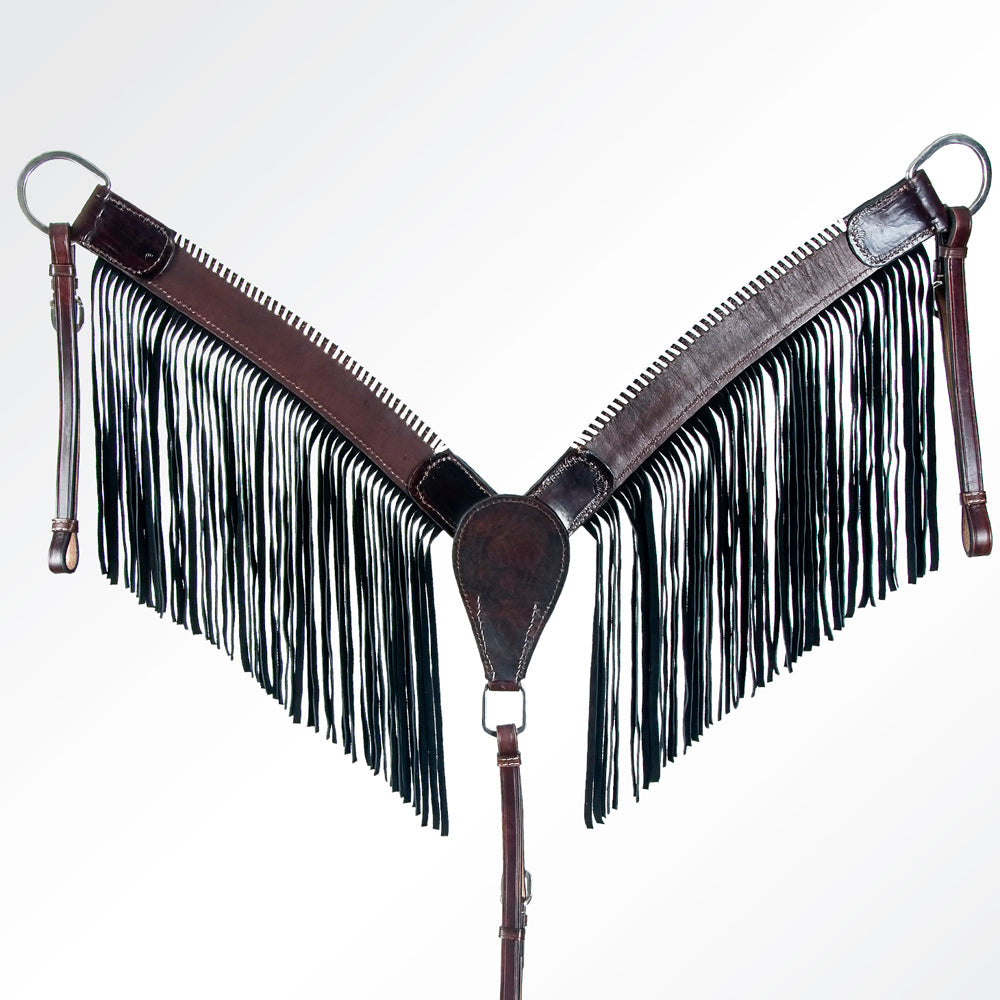 AMERICAN DARLING Western Horse Breast Collar Hand Carved Leather Dark Brown