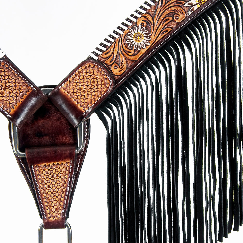 BAR H EQUINE Western Handtooled Leather Horse Headstall & Breast Collar Set