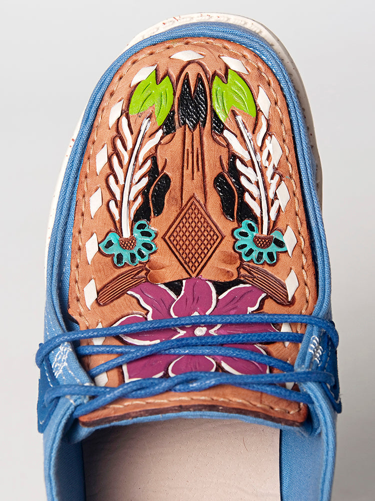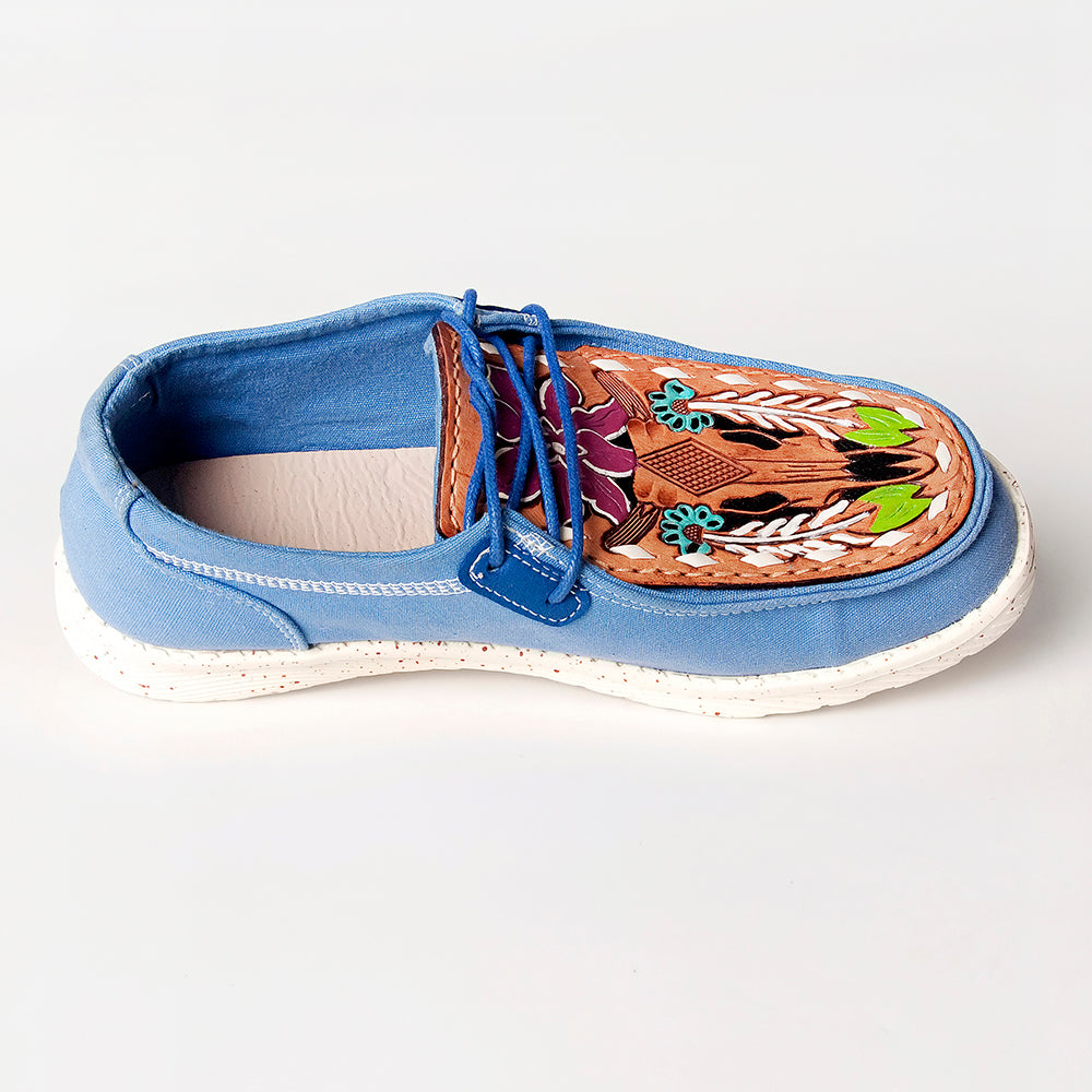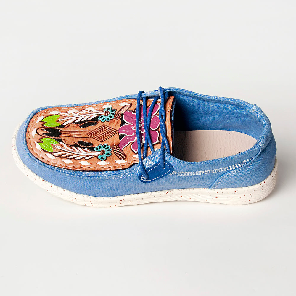 American Darling ADFT133BL2 Hand tooled carved genuine leather trim lightweight shoe footwear slip on