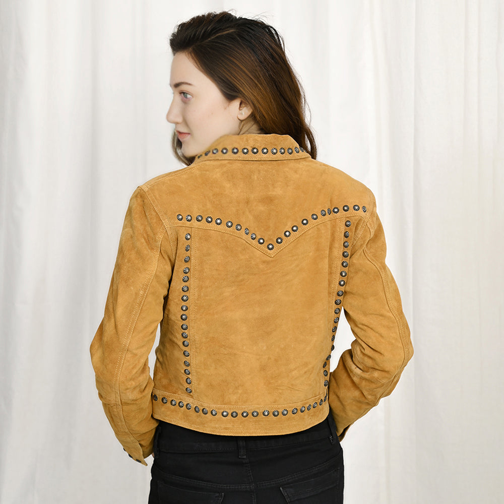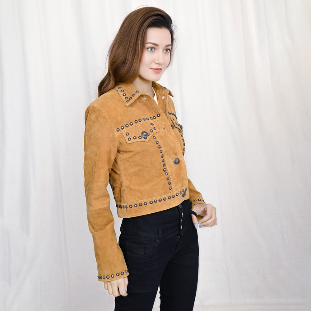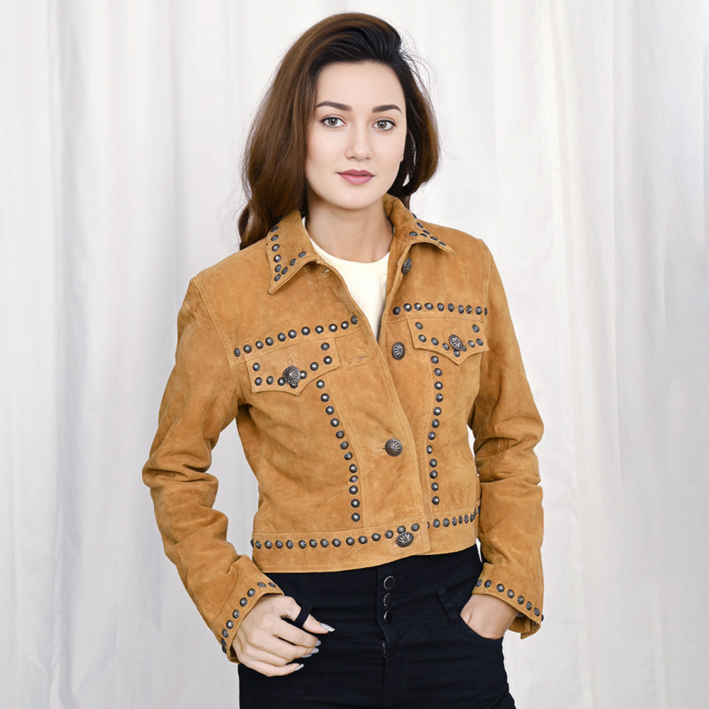ADBZ029 Genuine leather Hand tooled hand carved Women 100% cotton Denim Blazer dress jacket ladies Girl