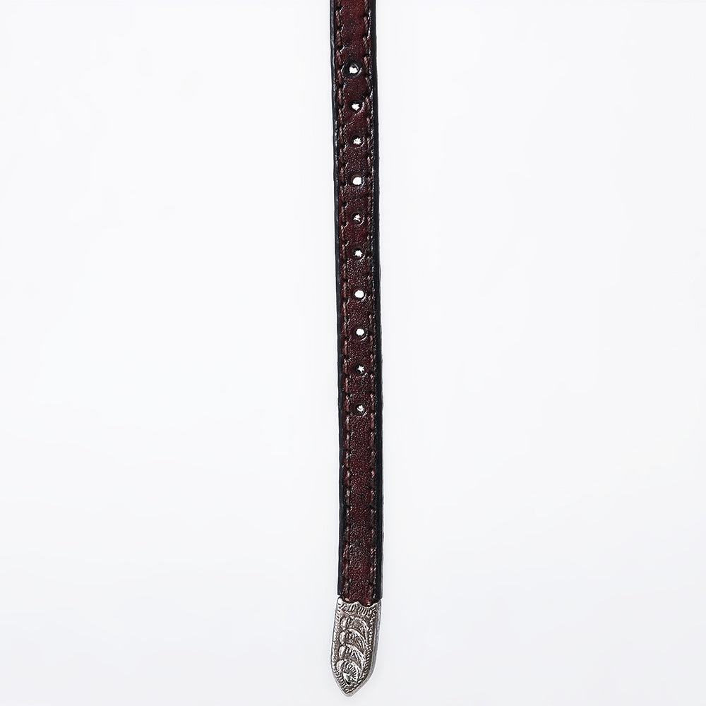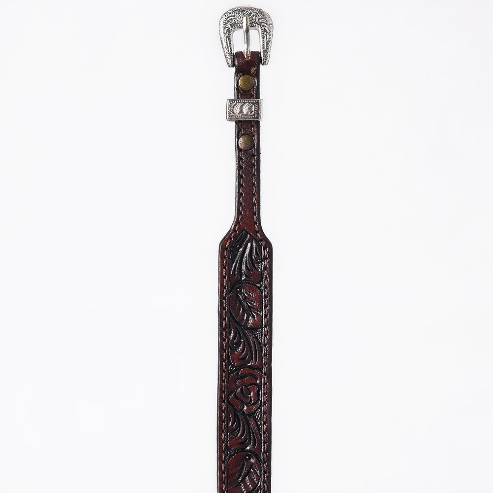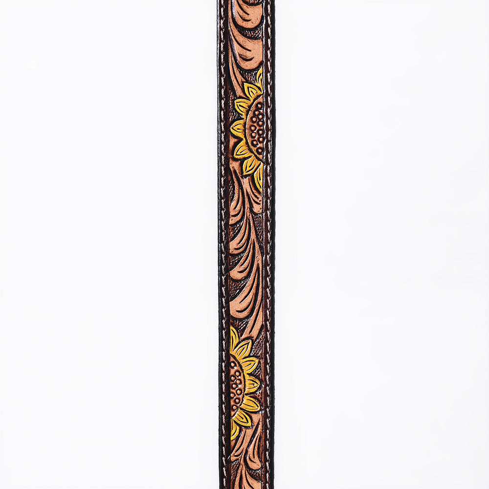 BAR H EQUINE Genuine White Flower Hand Painted Western Leather Men And Women Belt Dark Brown