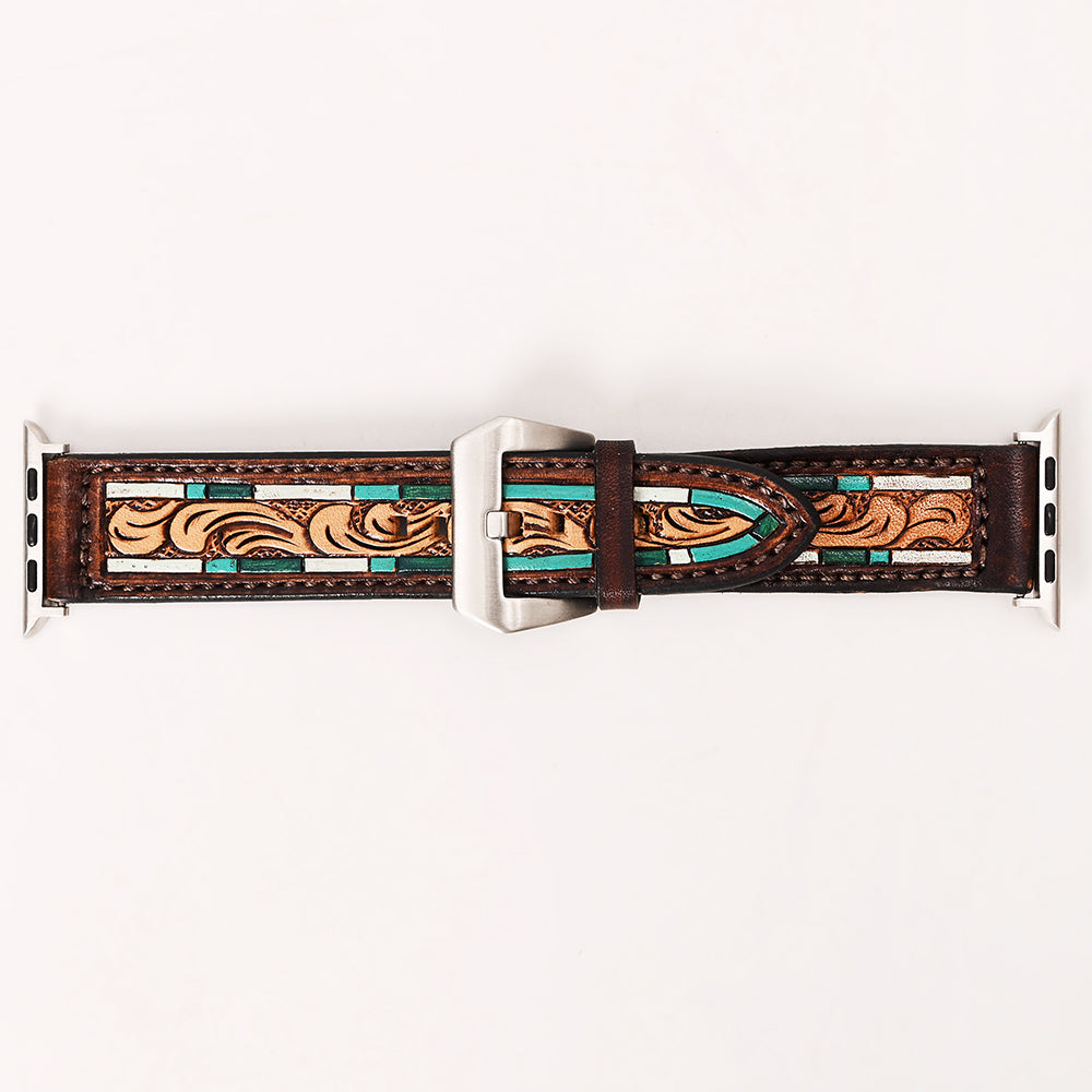 American Darling Beautifully Hand Tooled Hand Painted Genuine American Leather I watch Strap Men and Women Unisex