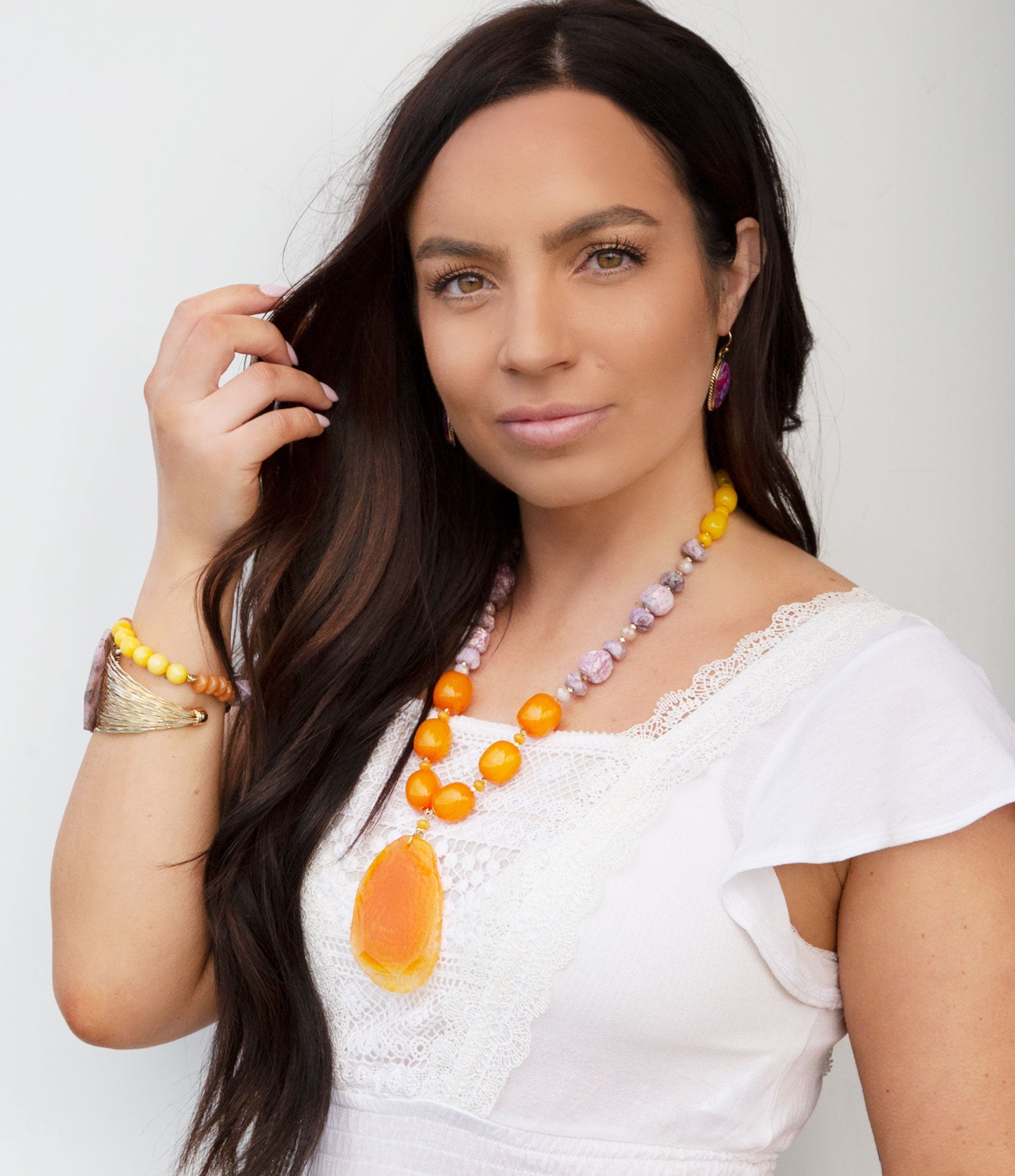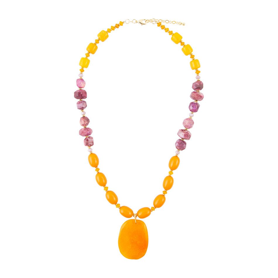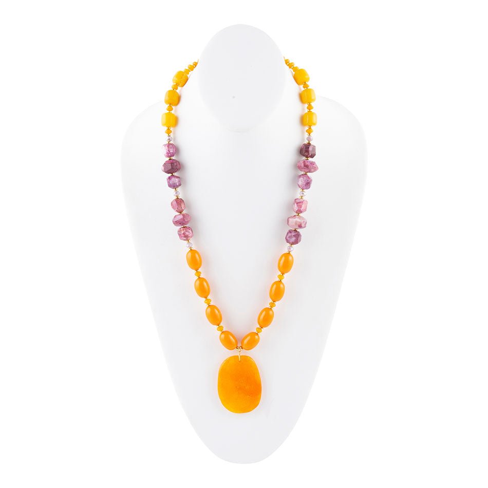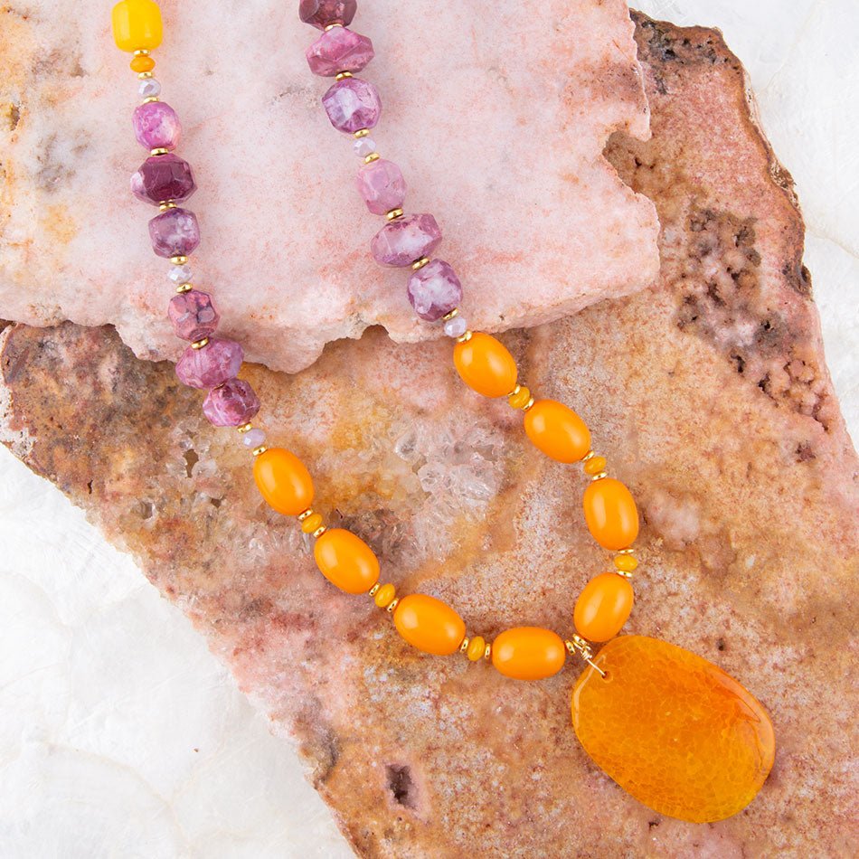 Mandy Orange and Blue Jasper Pendant Statement Necklace