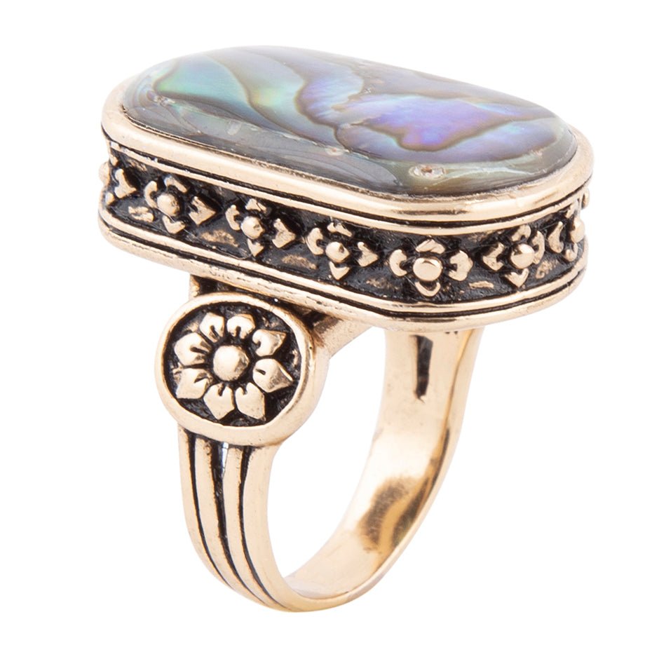 Etto Black Mother of Pearl Golden Dome Statement Ring