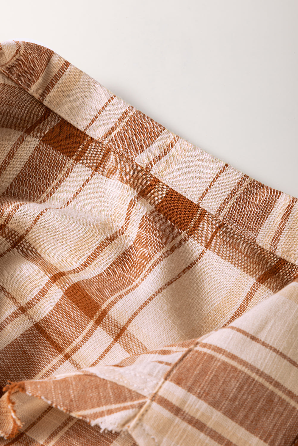 Plaid Side Pocket Frilled Babydoll Mini Dress