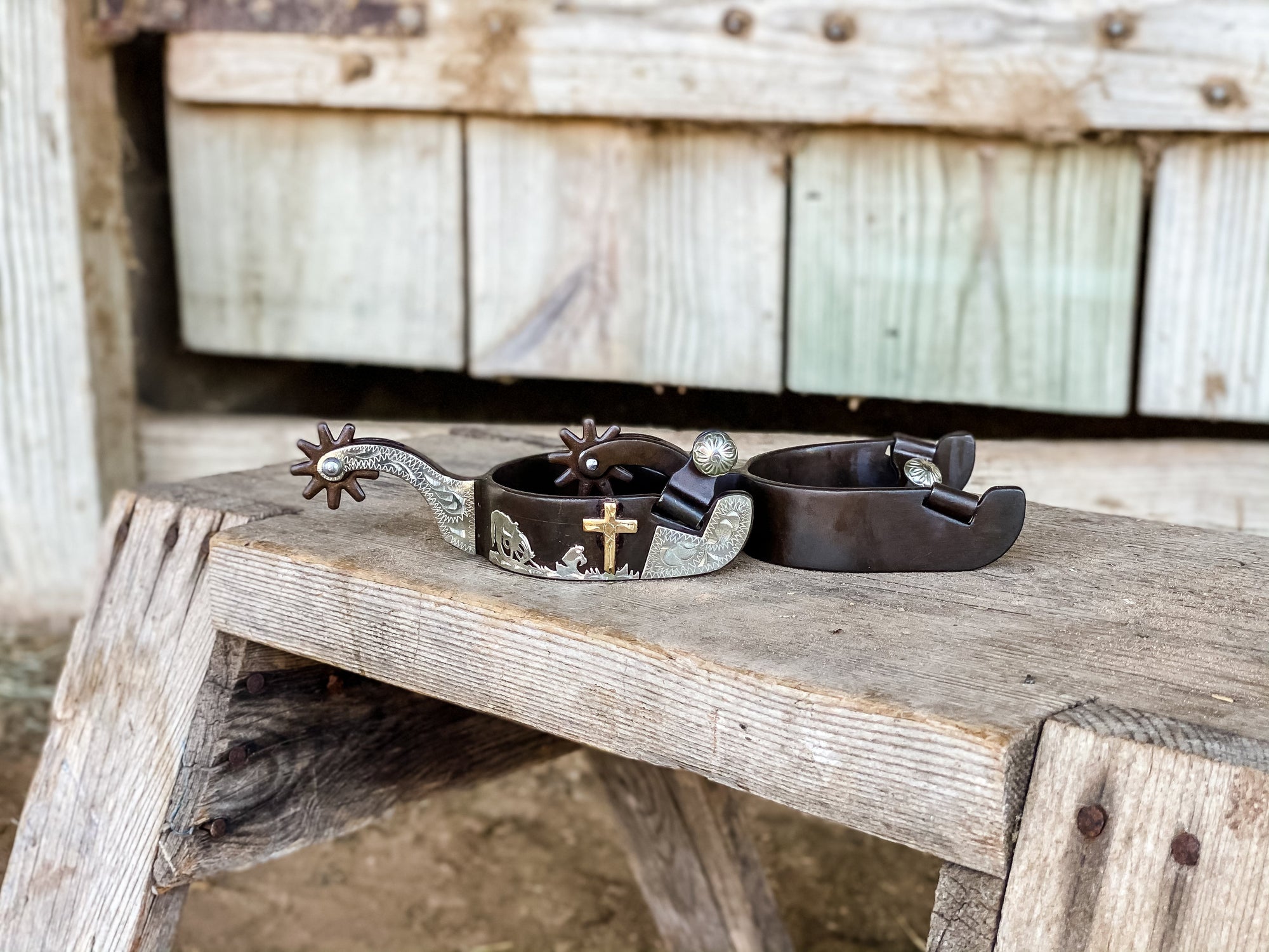 AJ Tack Praying Cowboy Antique Brown Spurs