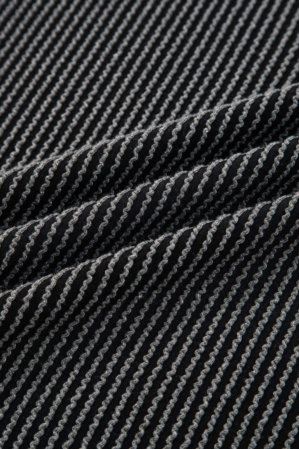 Corded Knit Roll-Up Sleeve Collared Henley Top