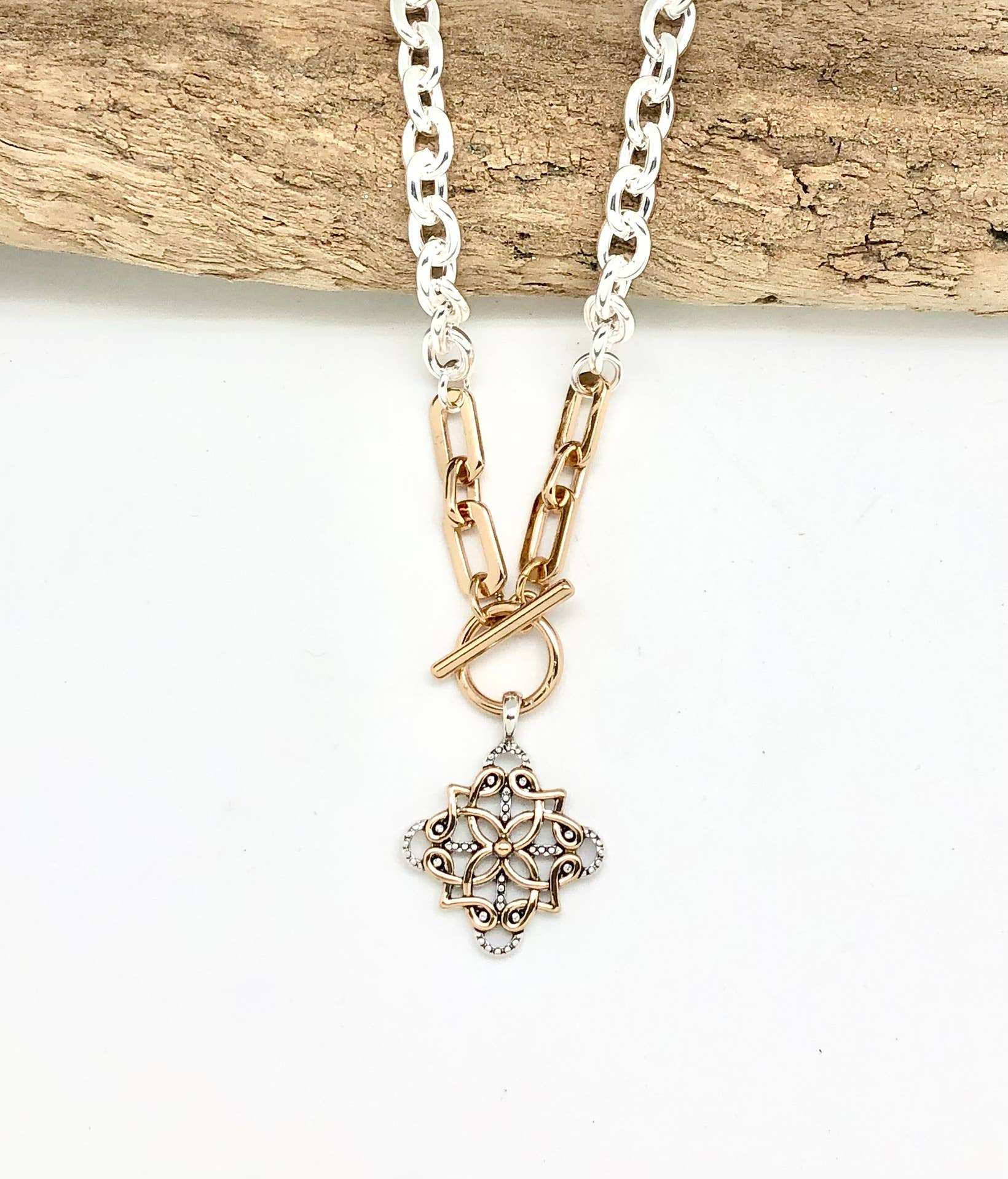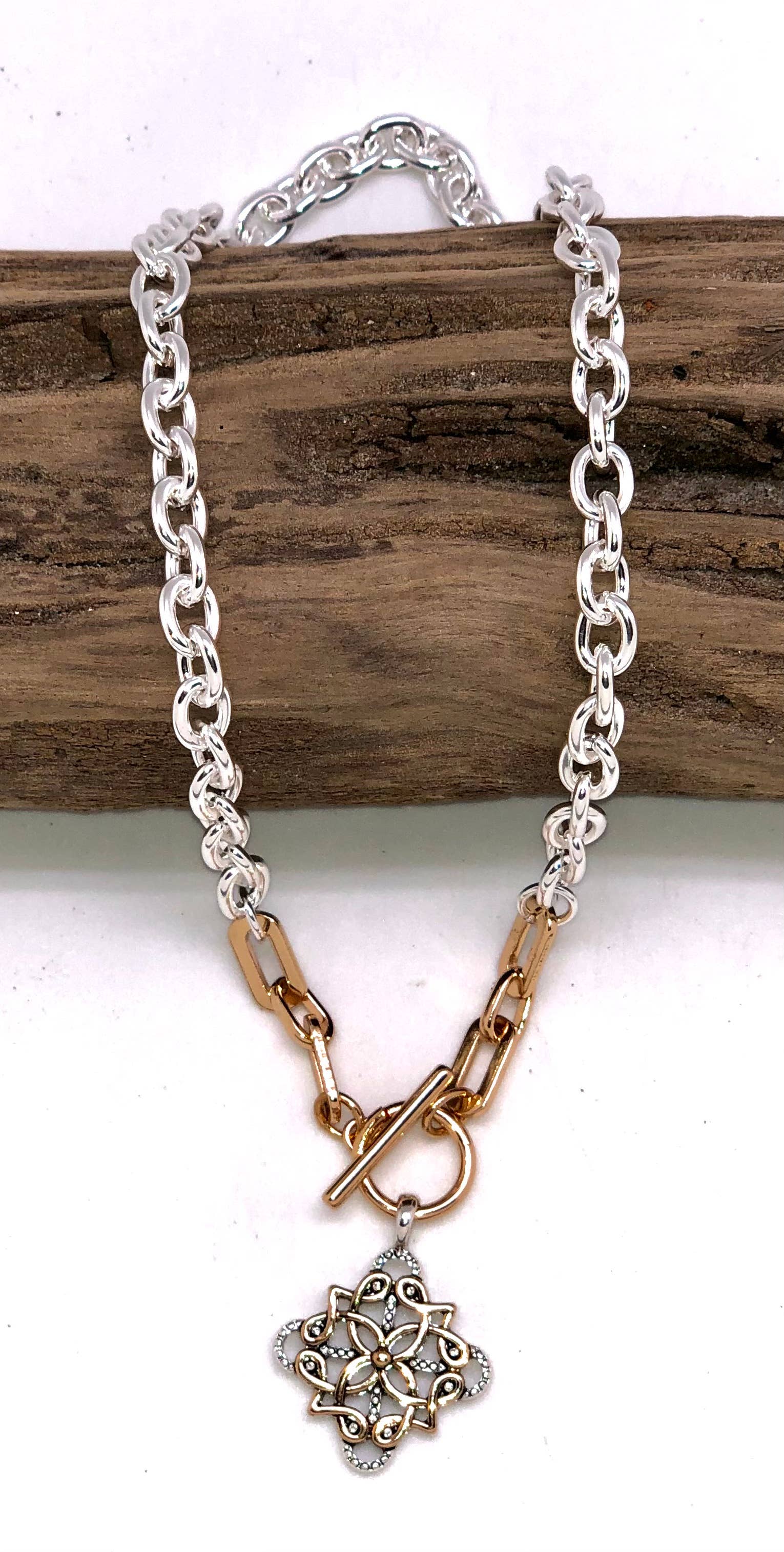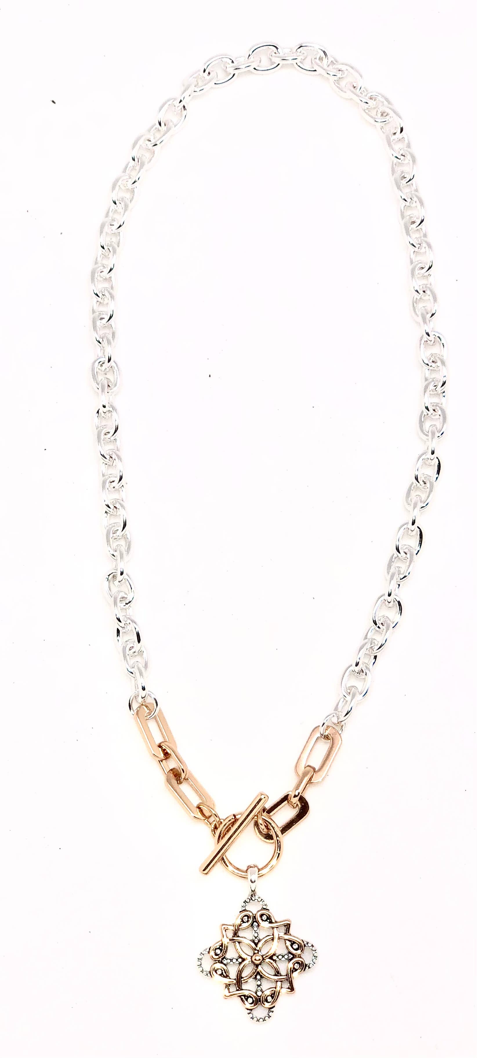 Necklace Alloy Plated Link Chain with Filigree Drop 18”