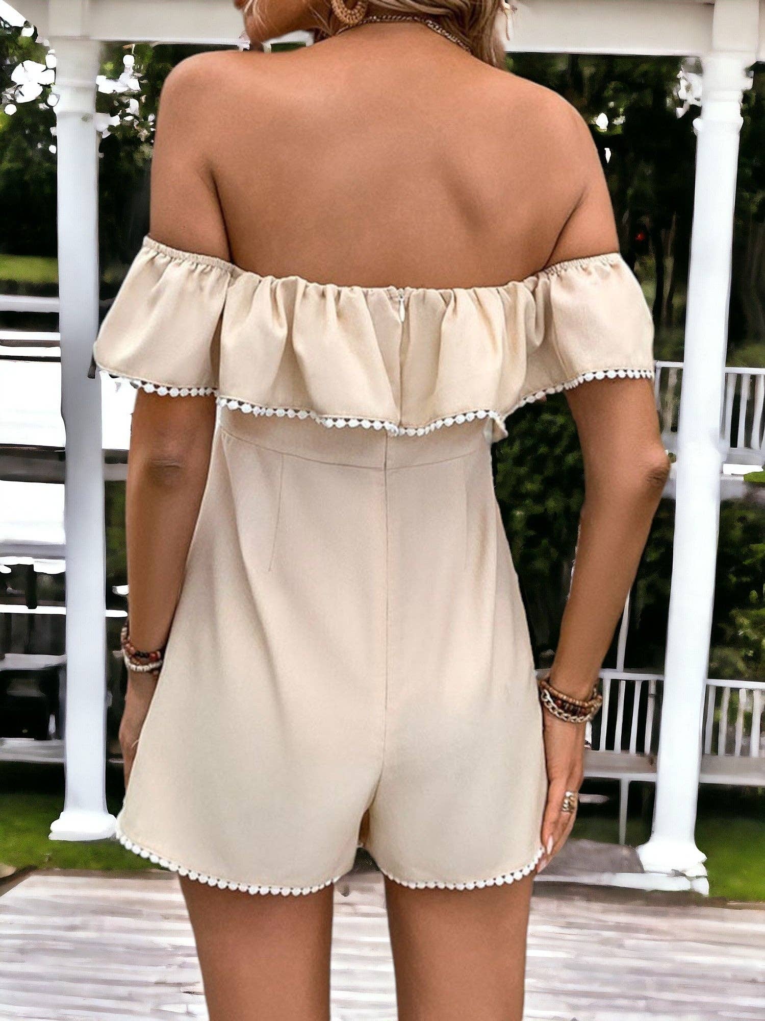 Tie-Front Relaxed Ruffle Hem Keyhole Romper