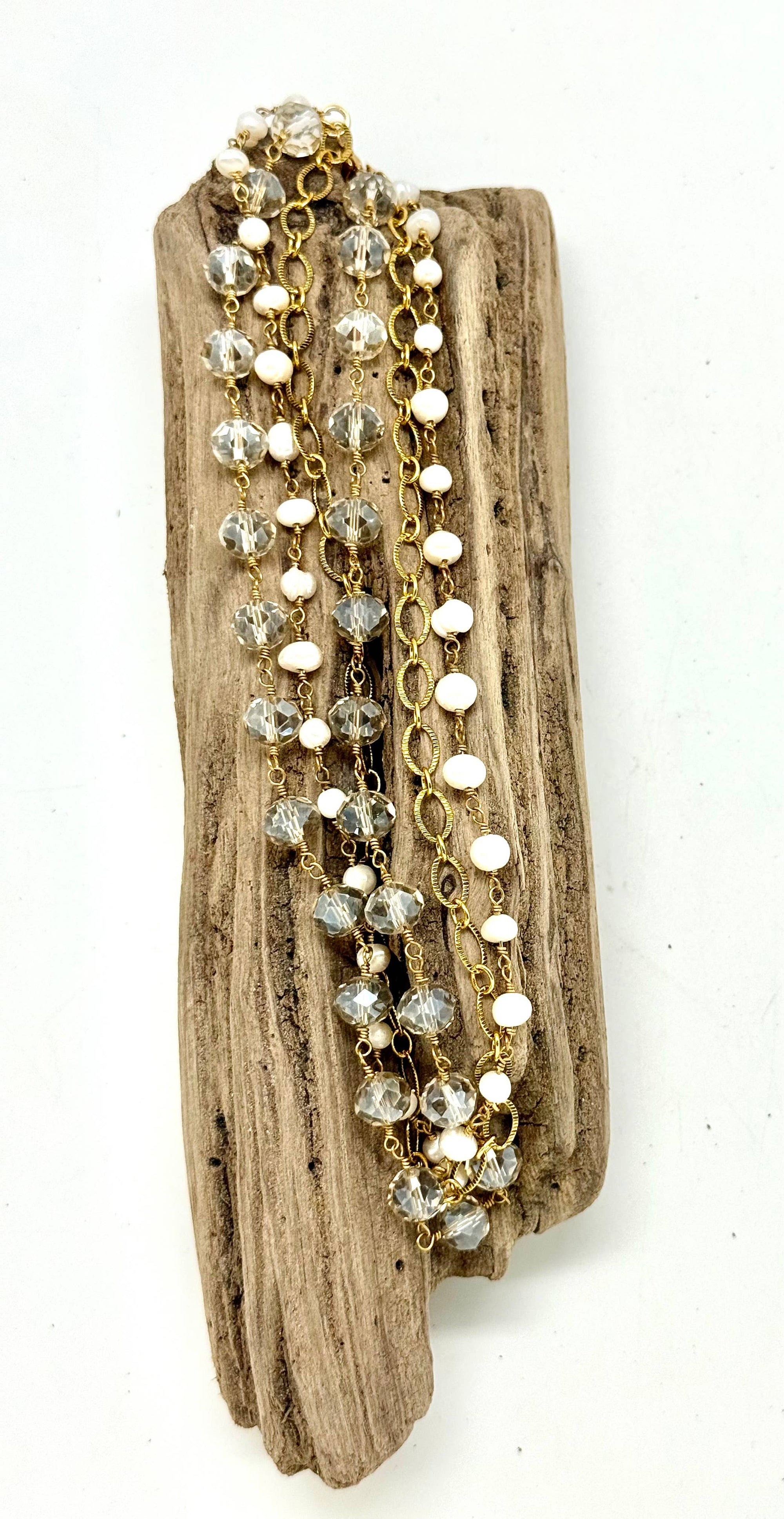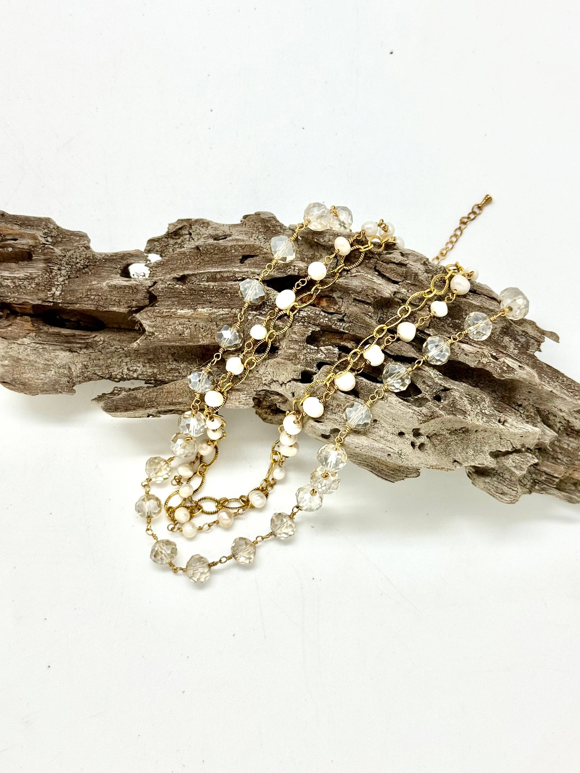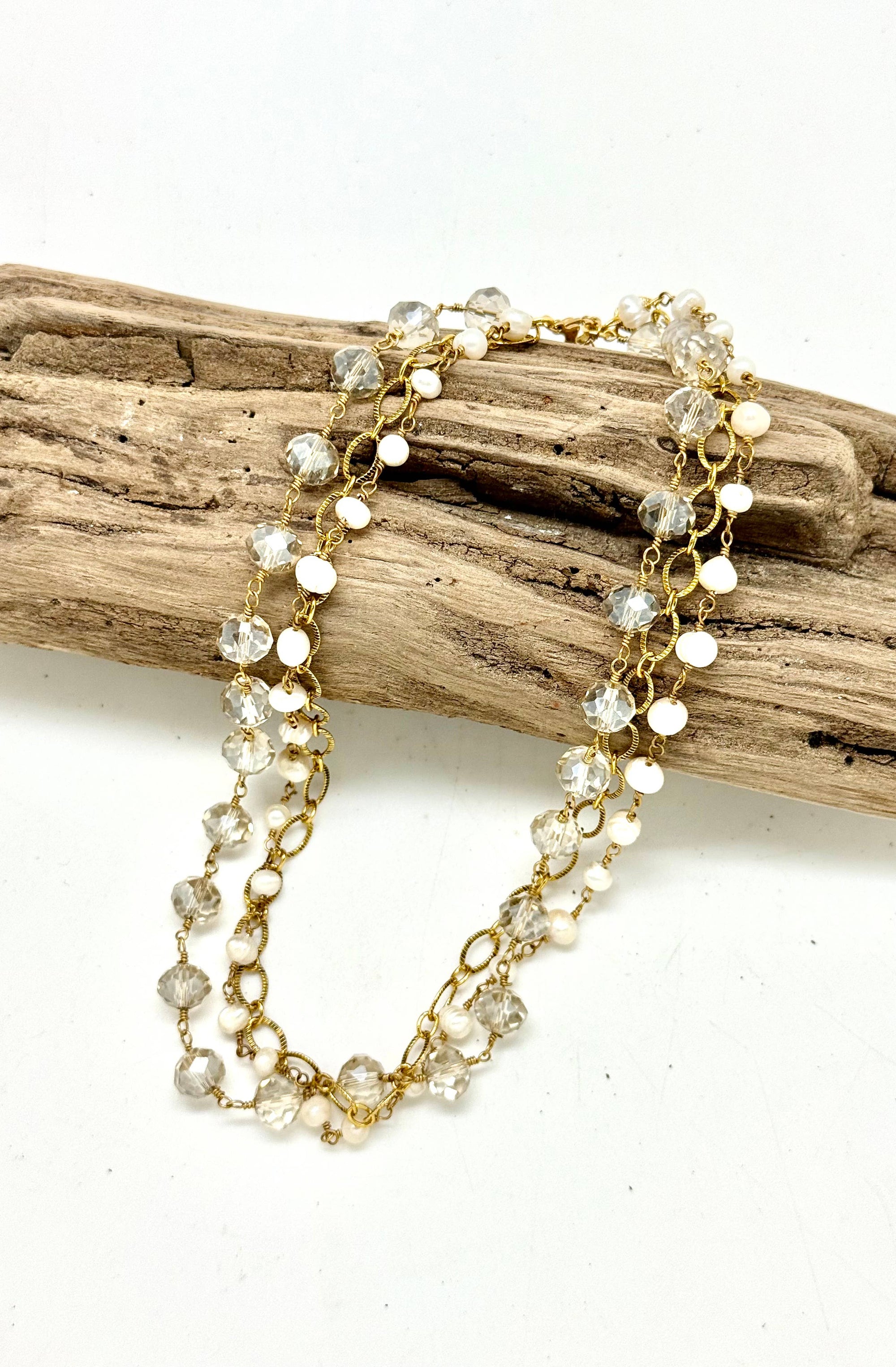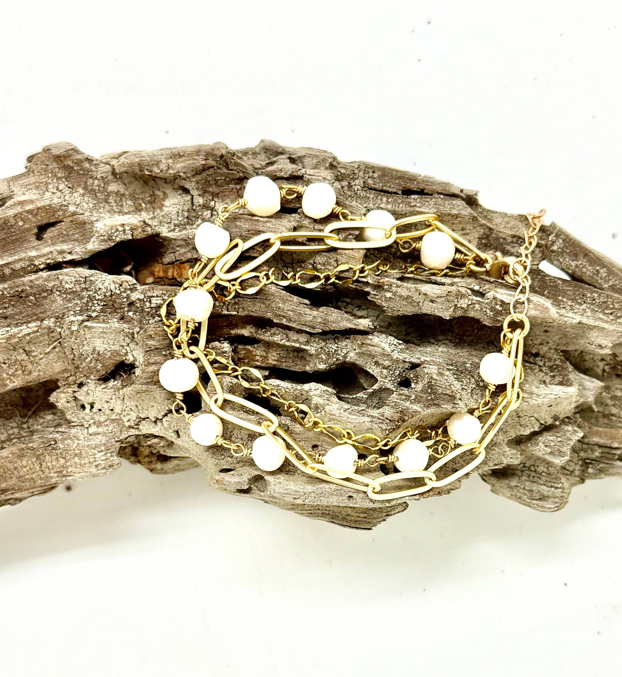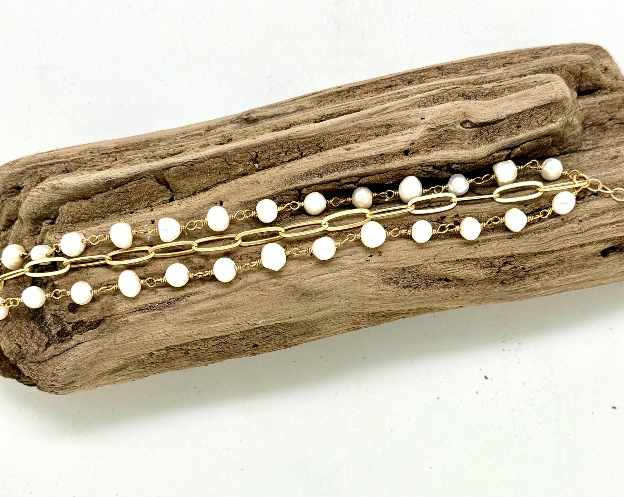 Bracelet Double Strand Freshwater Pearl w/Paper Clip Chain 7”