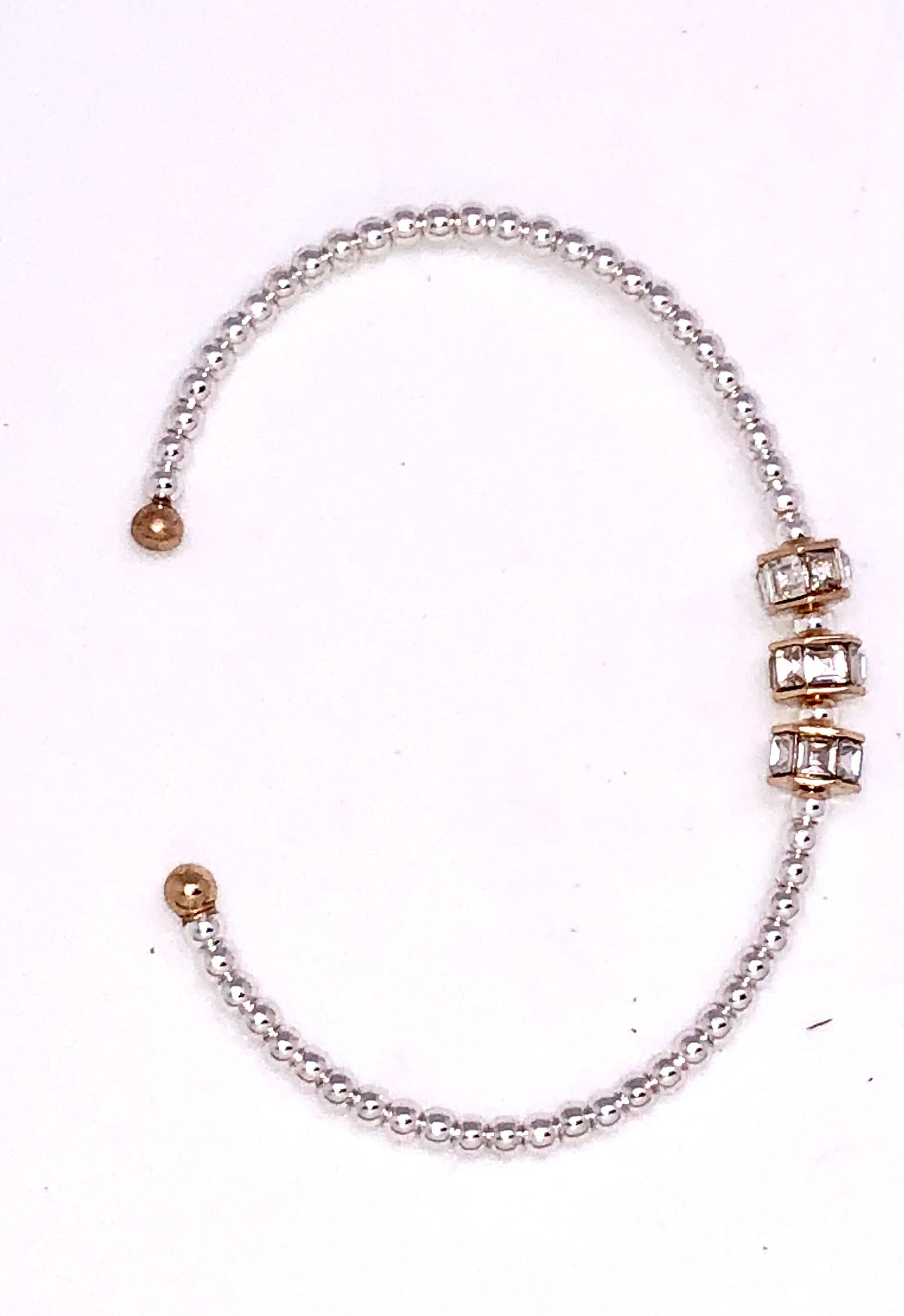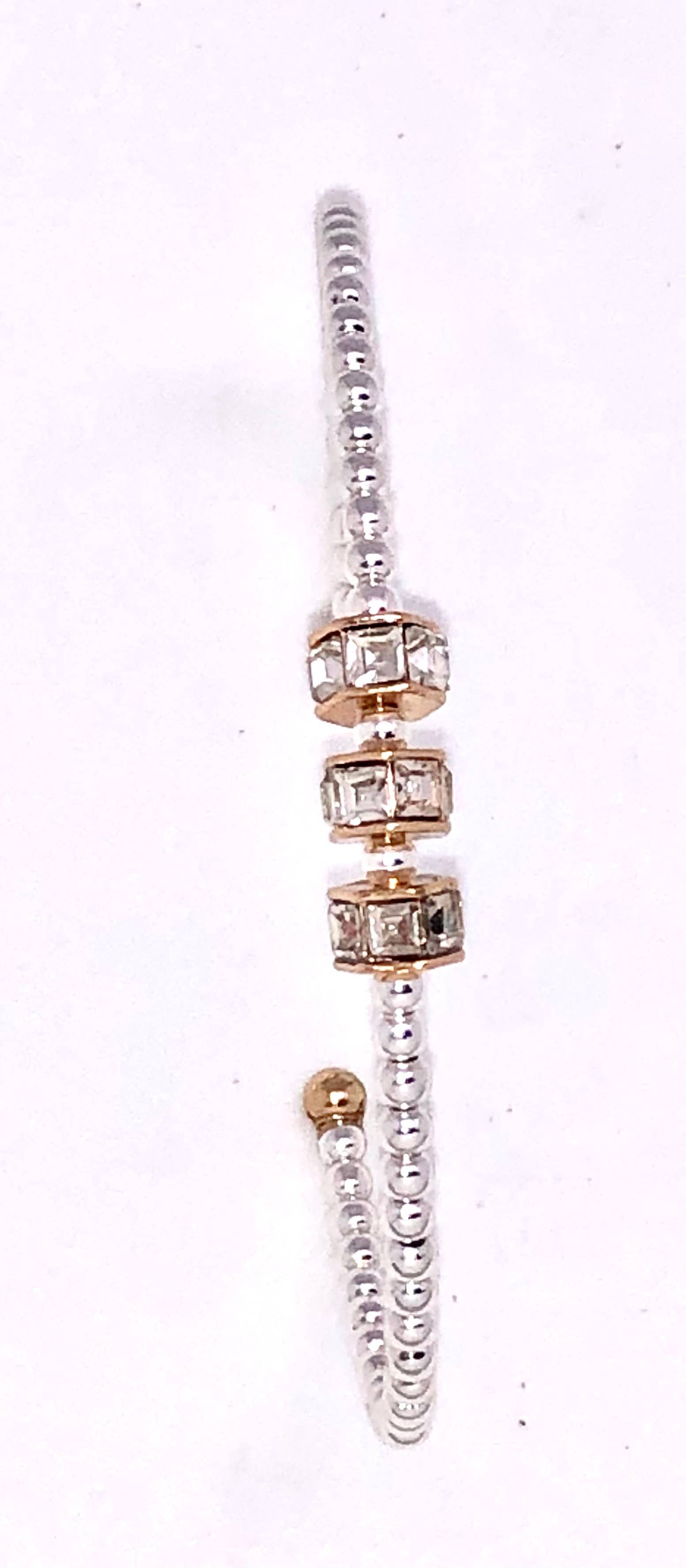 Cuff Alloy Plated 3mm Beaded Bracelet w/Glass Beveled Glass 7-8”