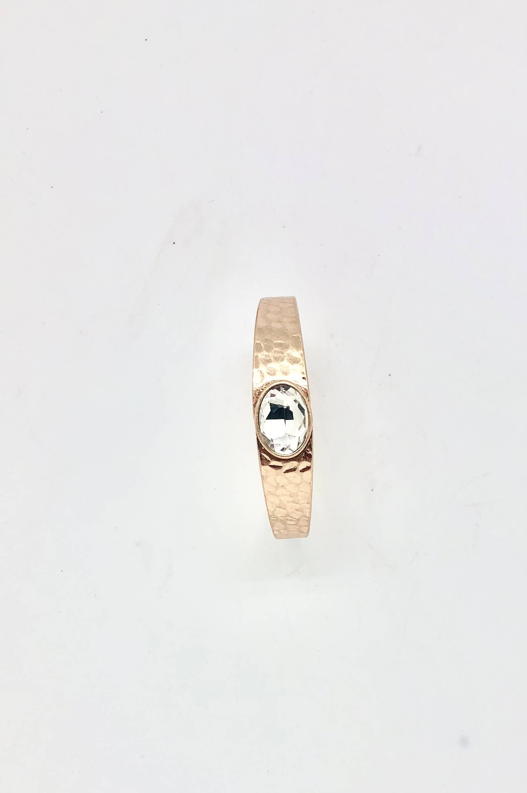 Bracelet Cuff Thick Oval Clear Glass Matte Gold Hinge