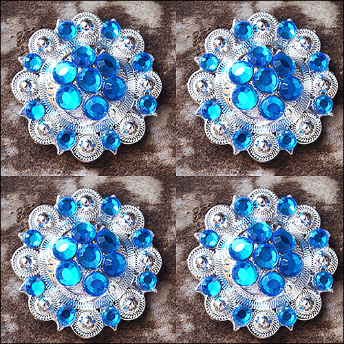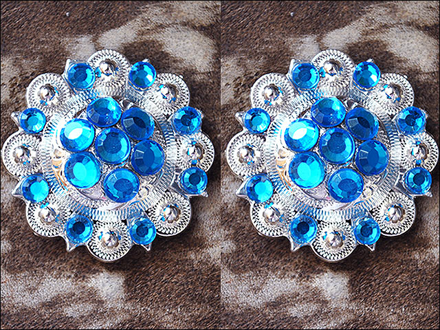 Aquamarine Topaz Crystals 1 -1/4In. Berry Concho Rhinestone Saddle Tack