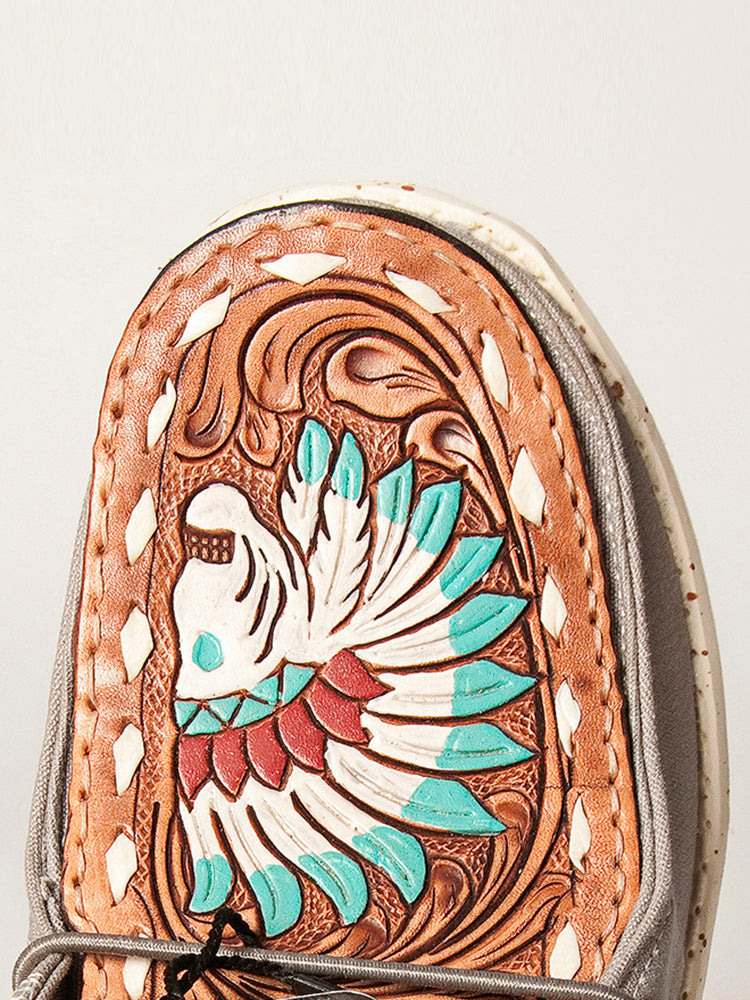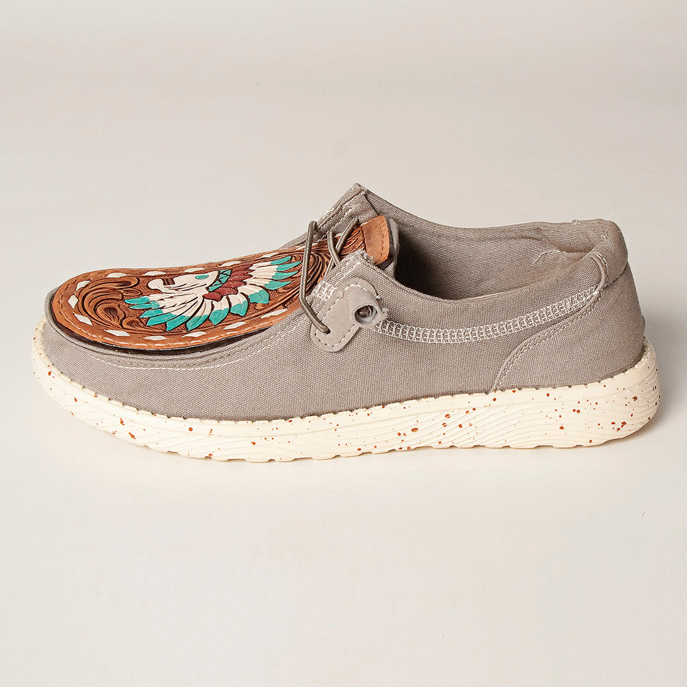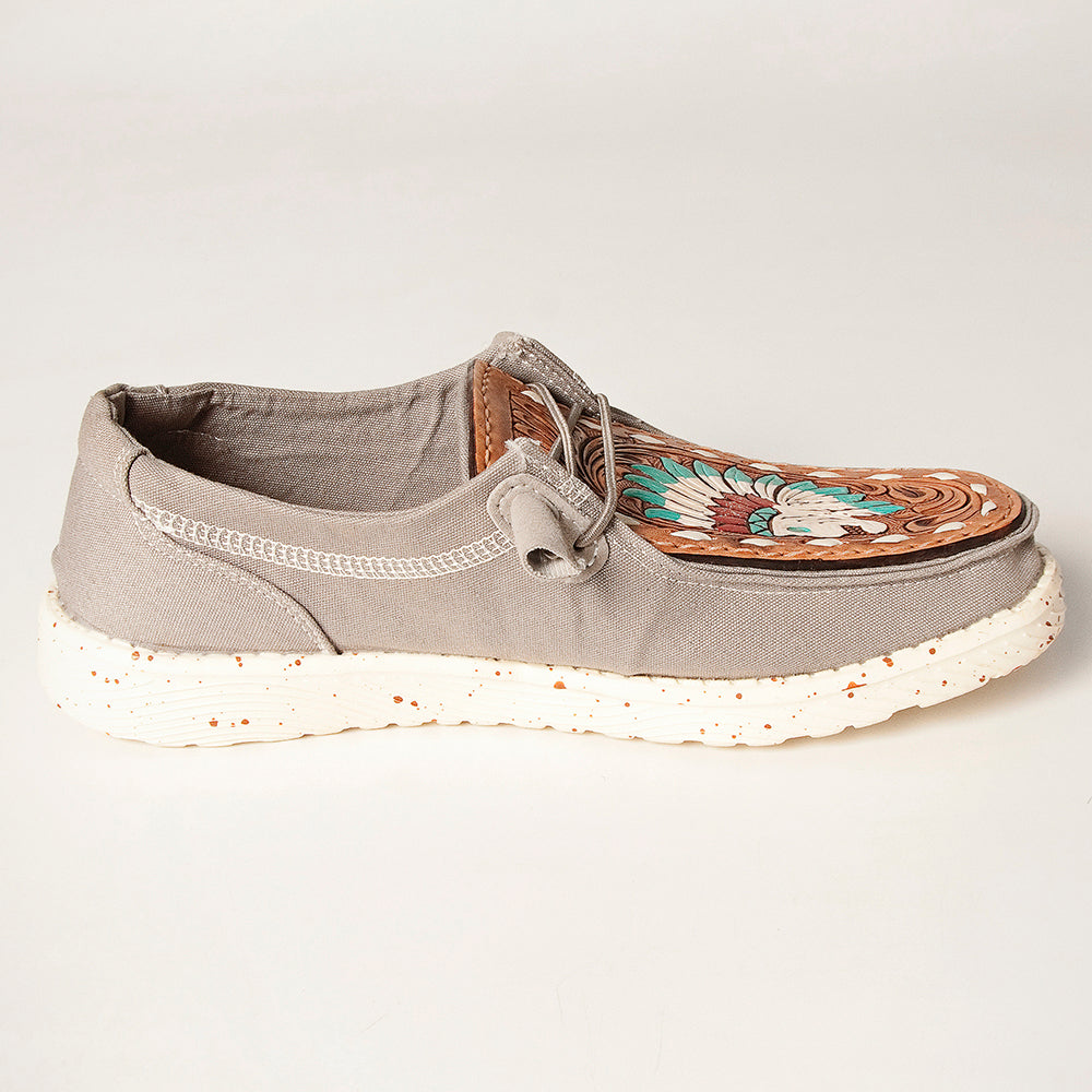 American Darling ADFT133GR1 Hand tooled carved genuine leather trim lightweight shoe footwear slip on