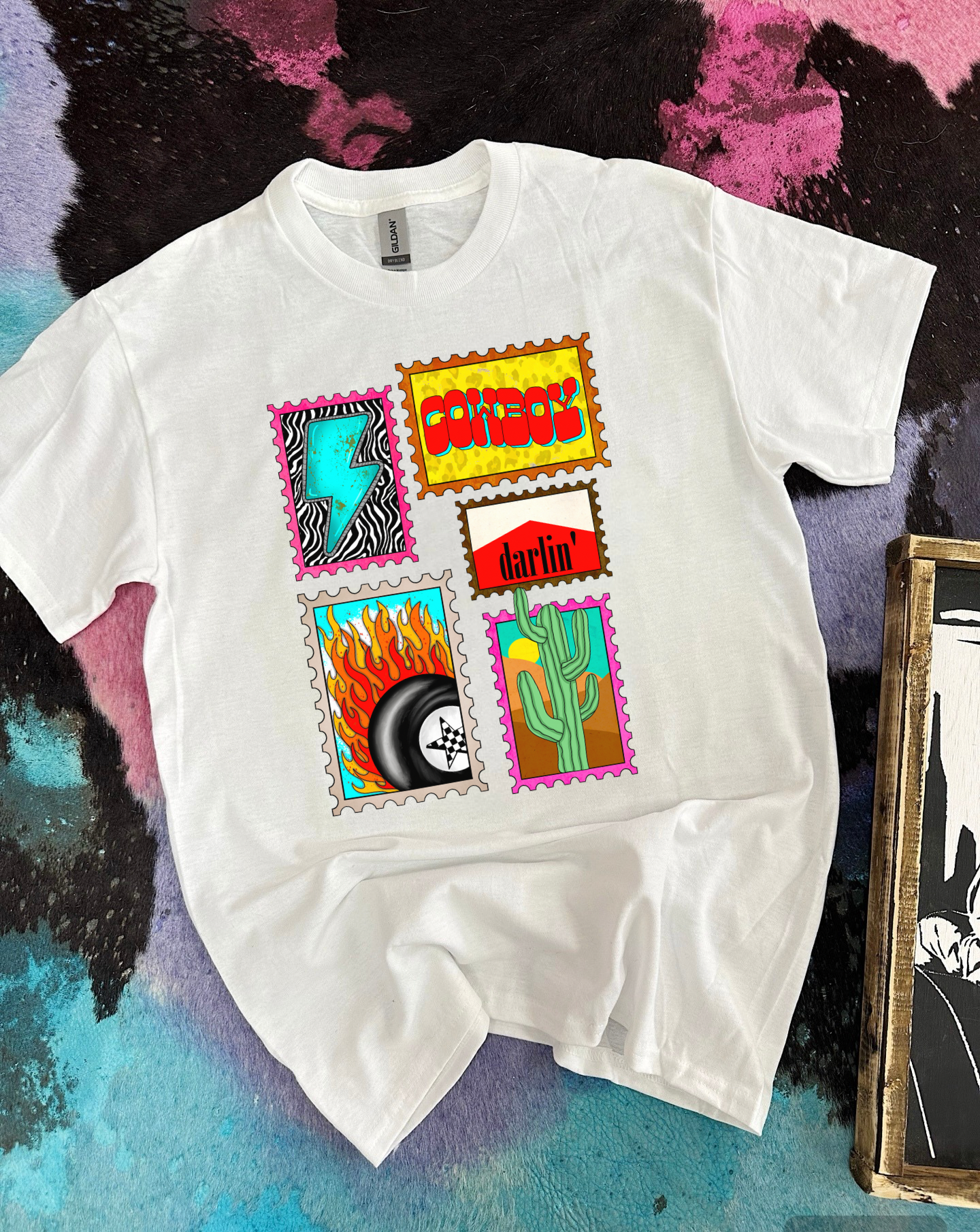 Western Stamp Collage Tee or Crewneck