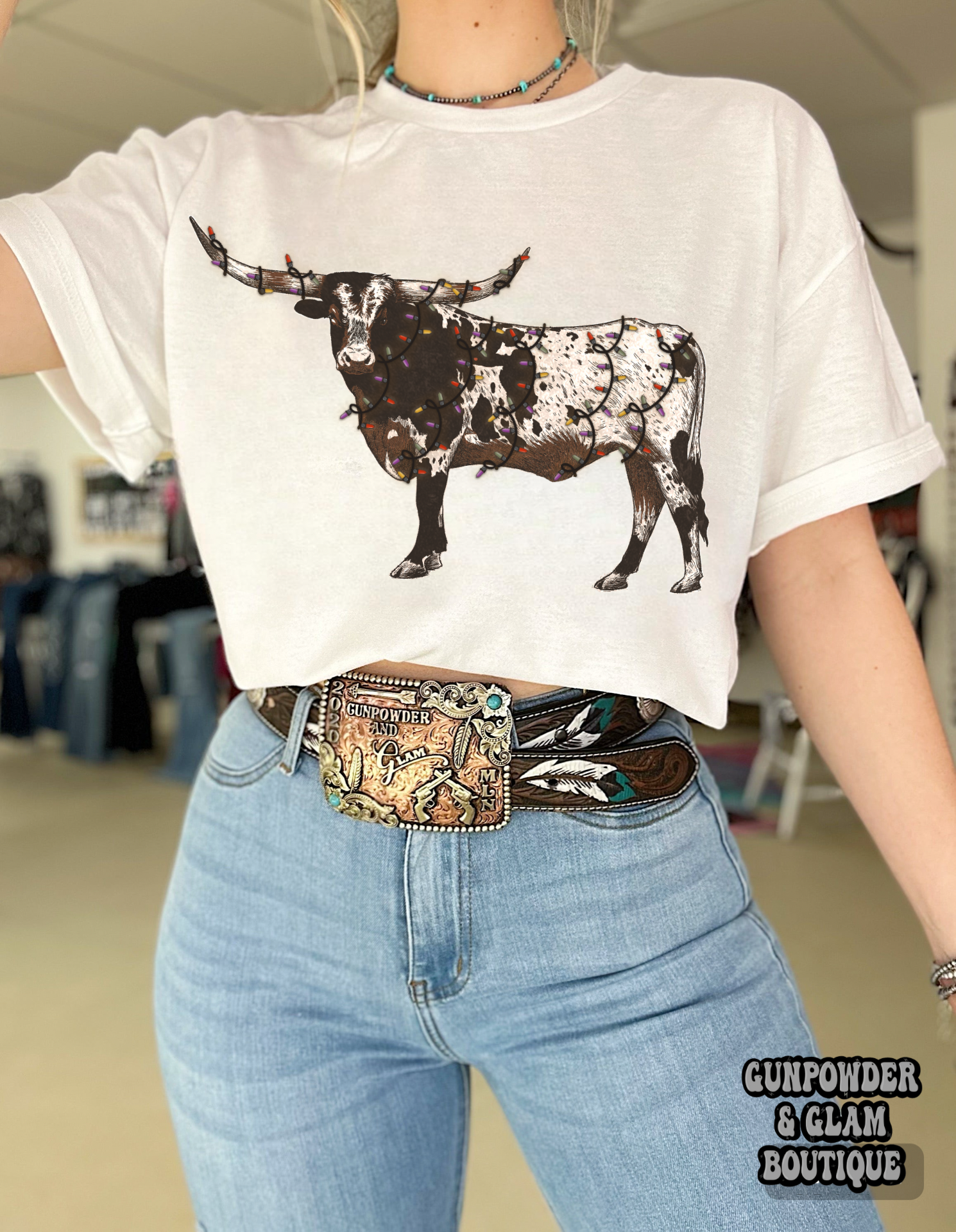 Christmas Lights Longhorn Tee or Crewneck
