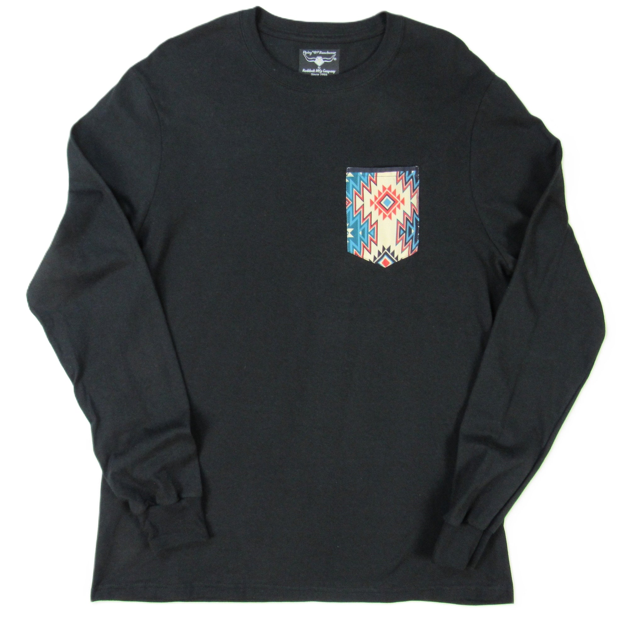 Flying R Ranchwear - Black with Southwest Print - Long Sleeve - Pocket T-shirt - Made in USA