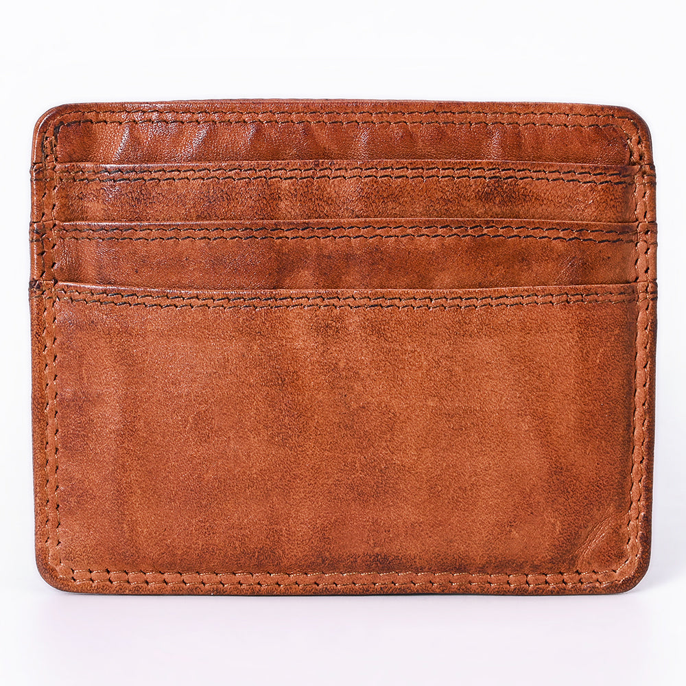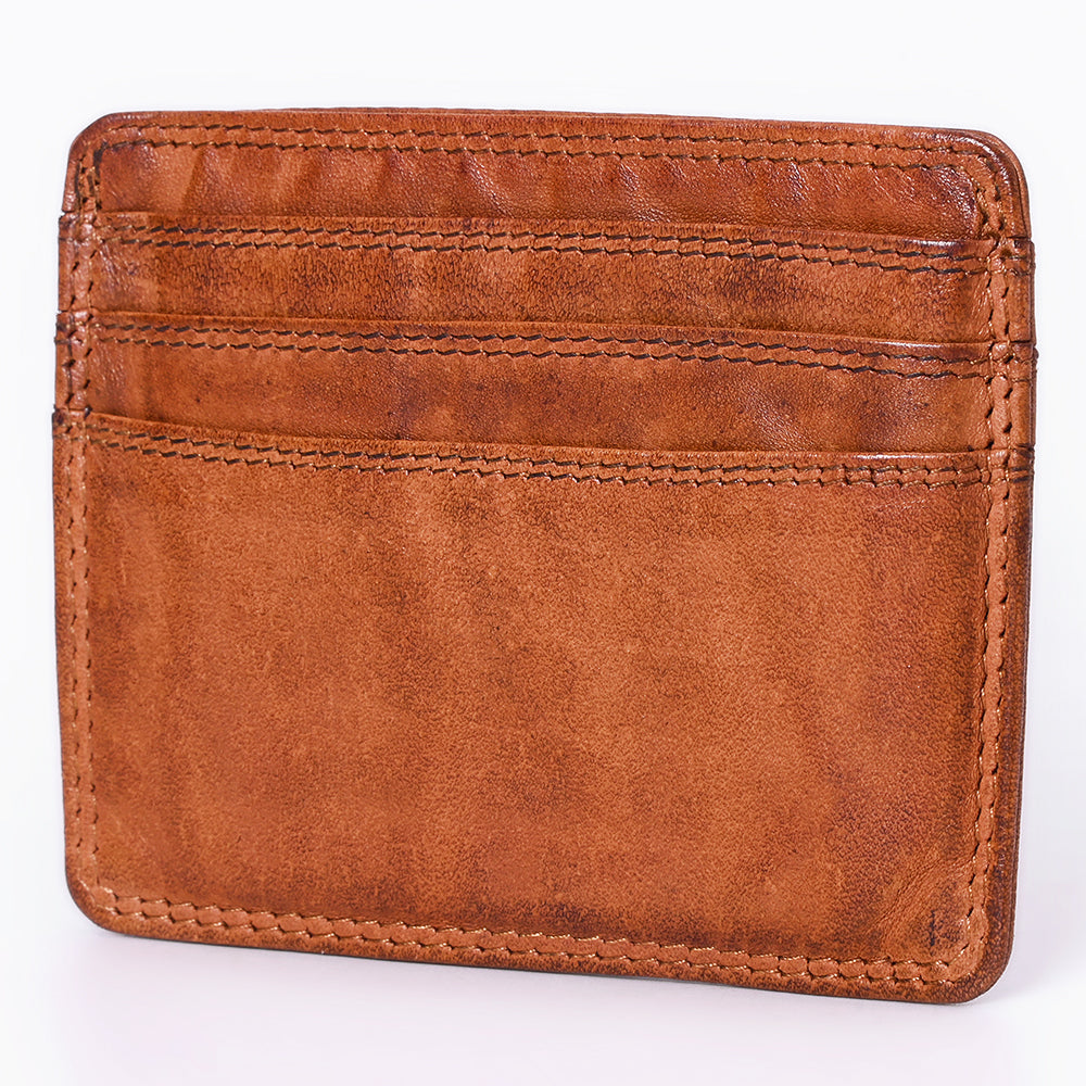 Spaghetti Western Swc451Cg Card-Holder Vintage Handmade Drum Dyed Genuine European Cowhide Leather Women Bag Western Handbag Purse
