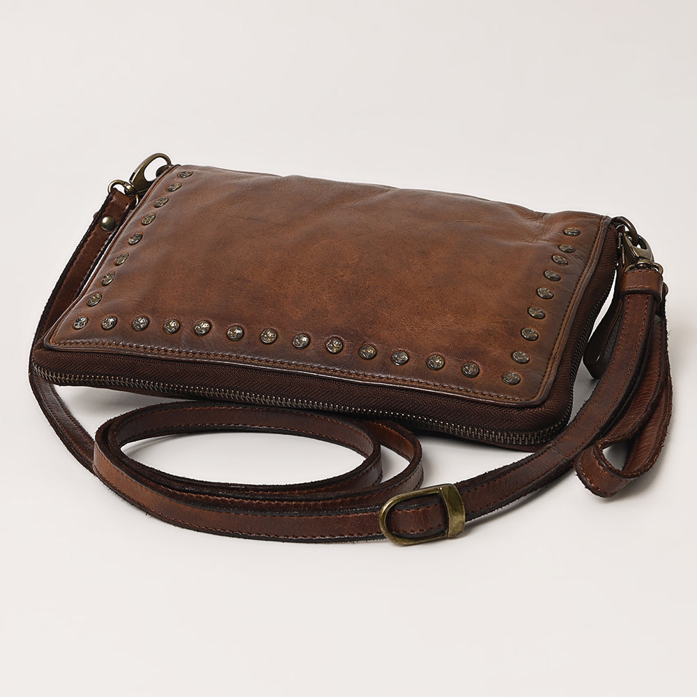 Spaghetti Western Swc197Brn Organiser Vintage Handmade Drum Dyed Genuine European Cowhide Leather Women Bag Western Handbag Purse