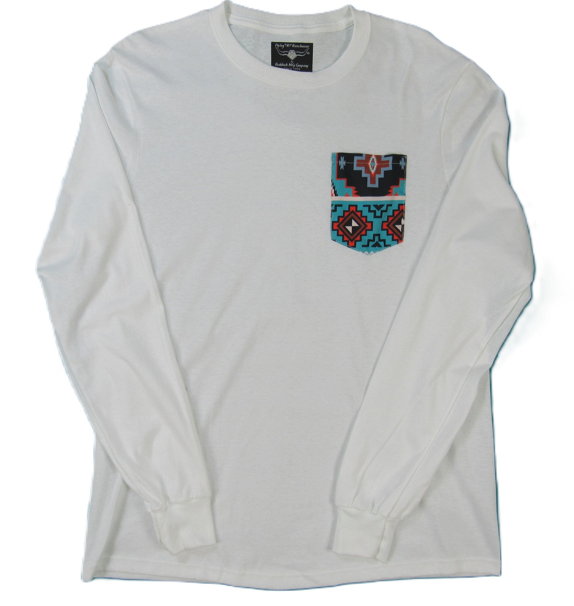 Flying R Ranchwear - White with Southwest Print - Long Sleeve - Pocket T-shirt - Made in USA