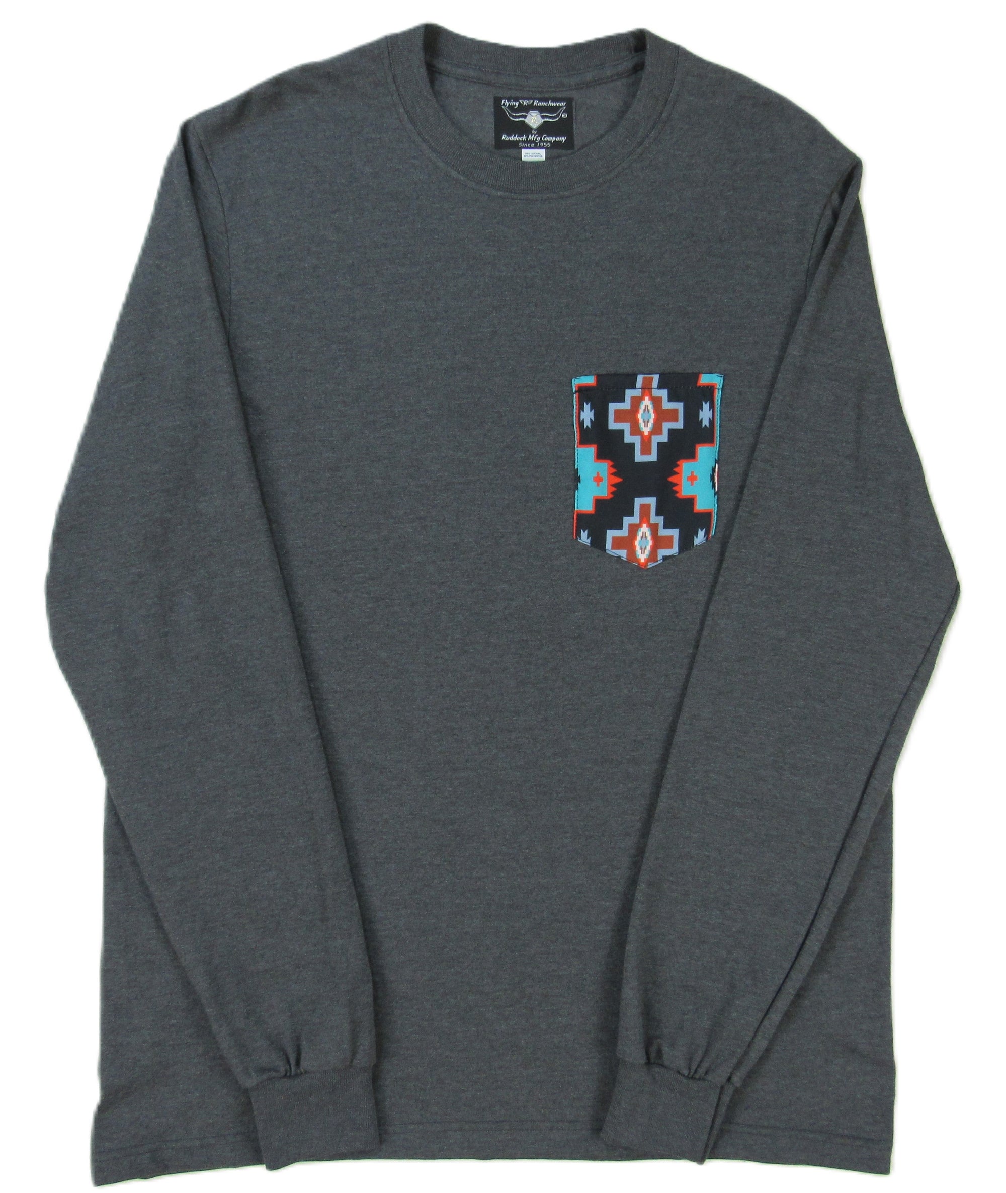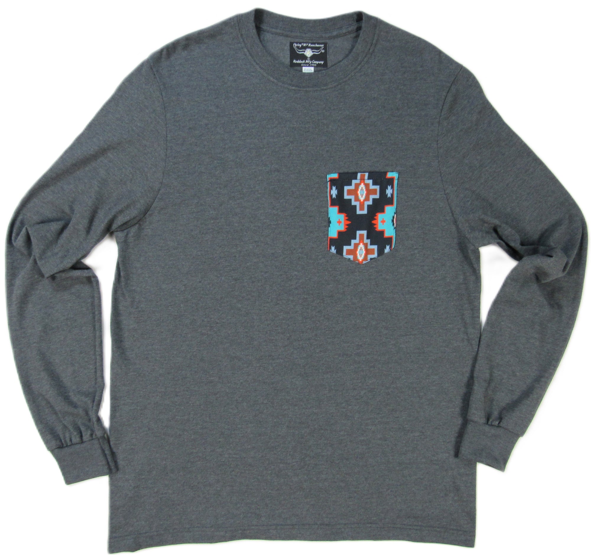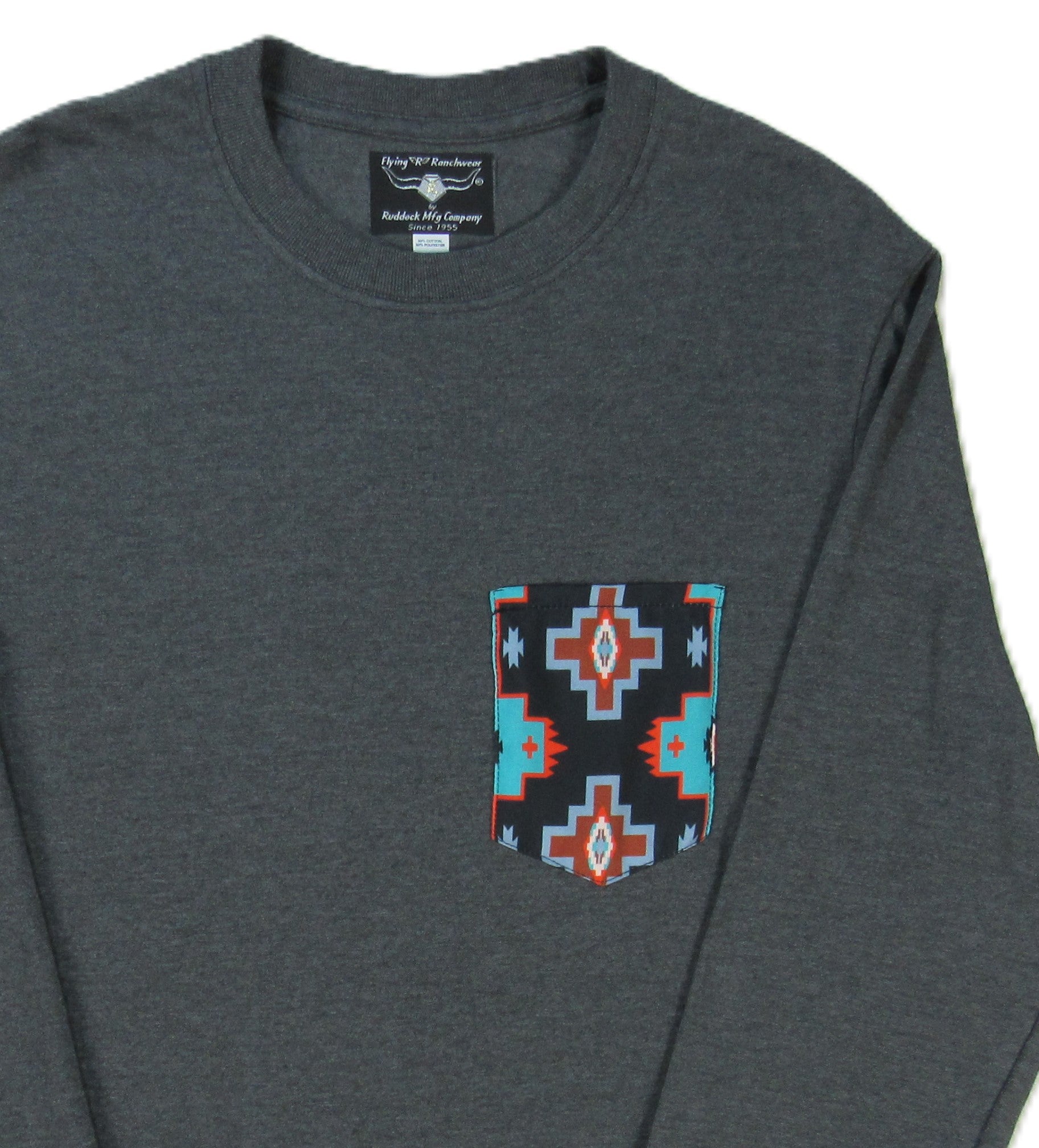 Flying R Ranchwear - Gray Heather with Southwest Print - Long Sleeve - Pocket T-shirt - Made in USA