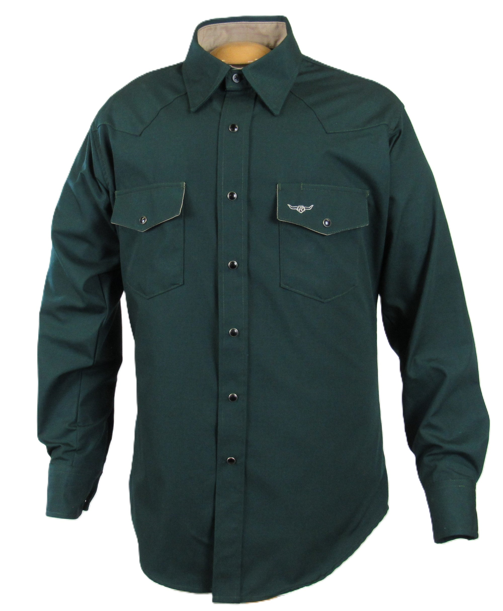 Flying R Ranchwear - Rigid Canvas Chore Shirt - Hunter Green - Long Sleeve - Snaps