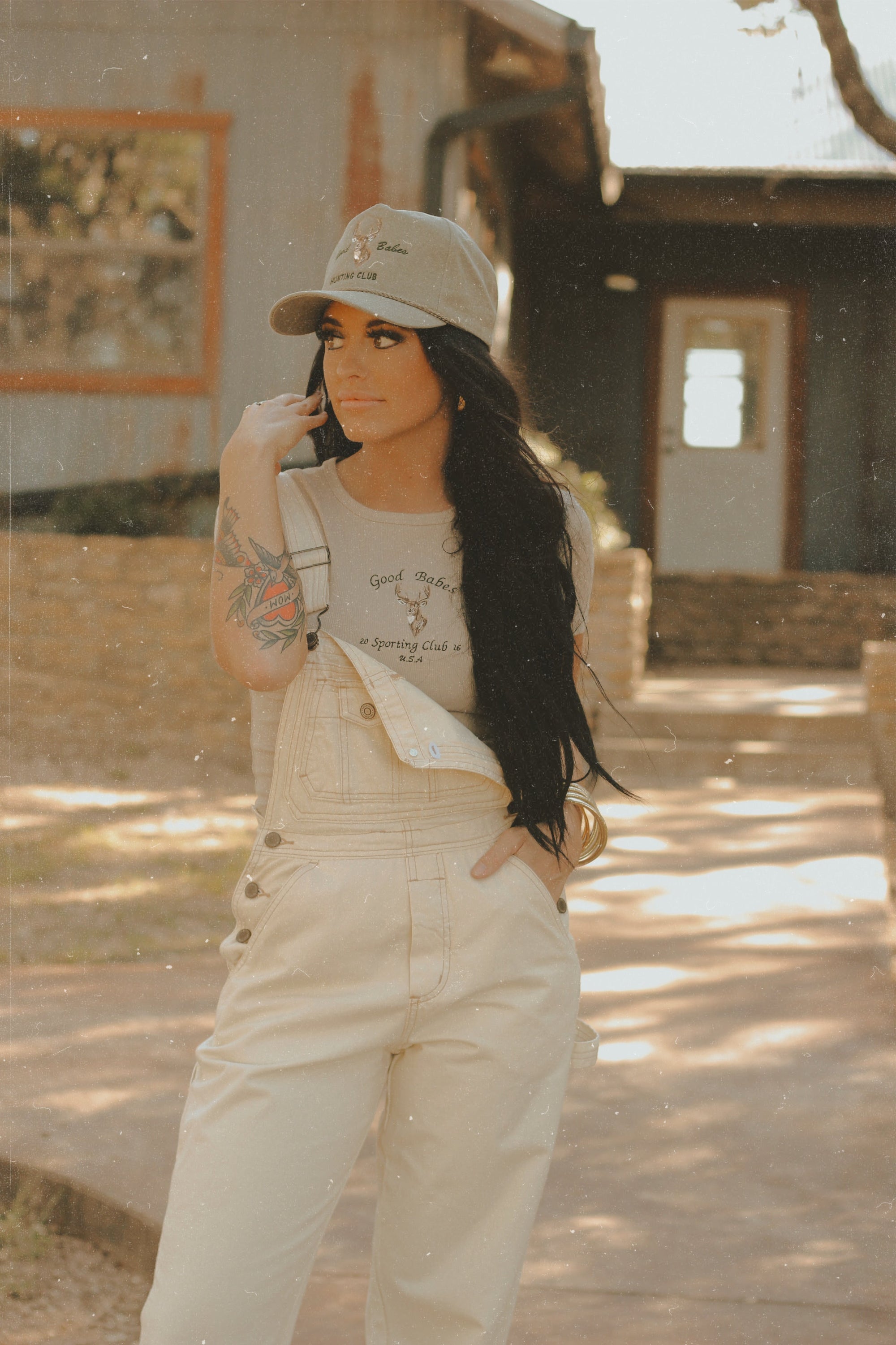 Bourbon Cowgirl Script Embroidered Baseball Hat -Tan
