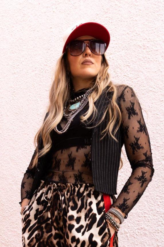 Bourbon Cowgirl Embroidered Foam Trucker Hat - Black
