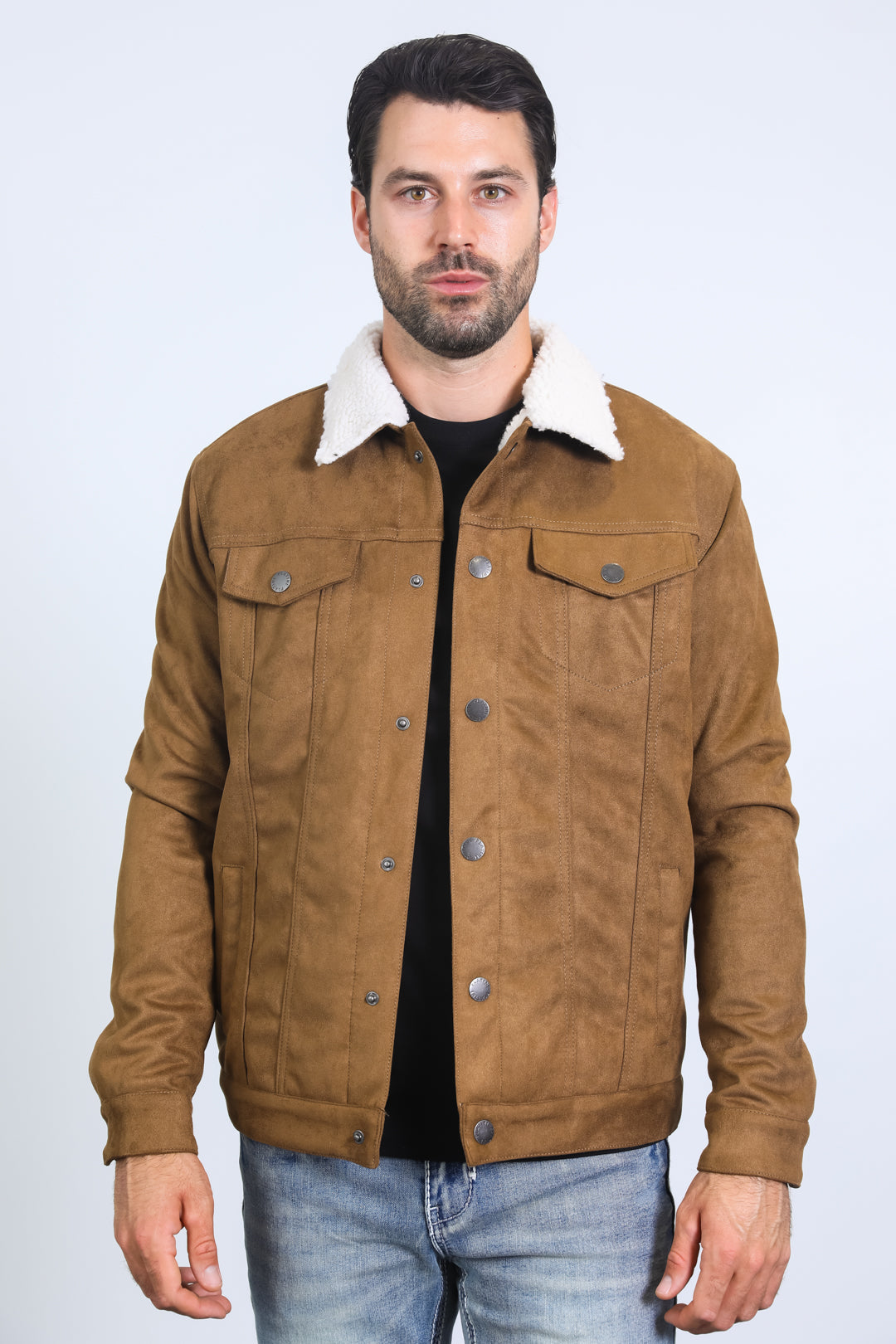 Mens Sherpa Lined Faux Suede Jacket - Camel